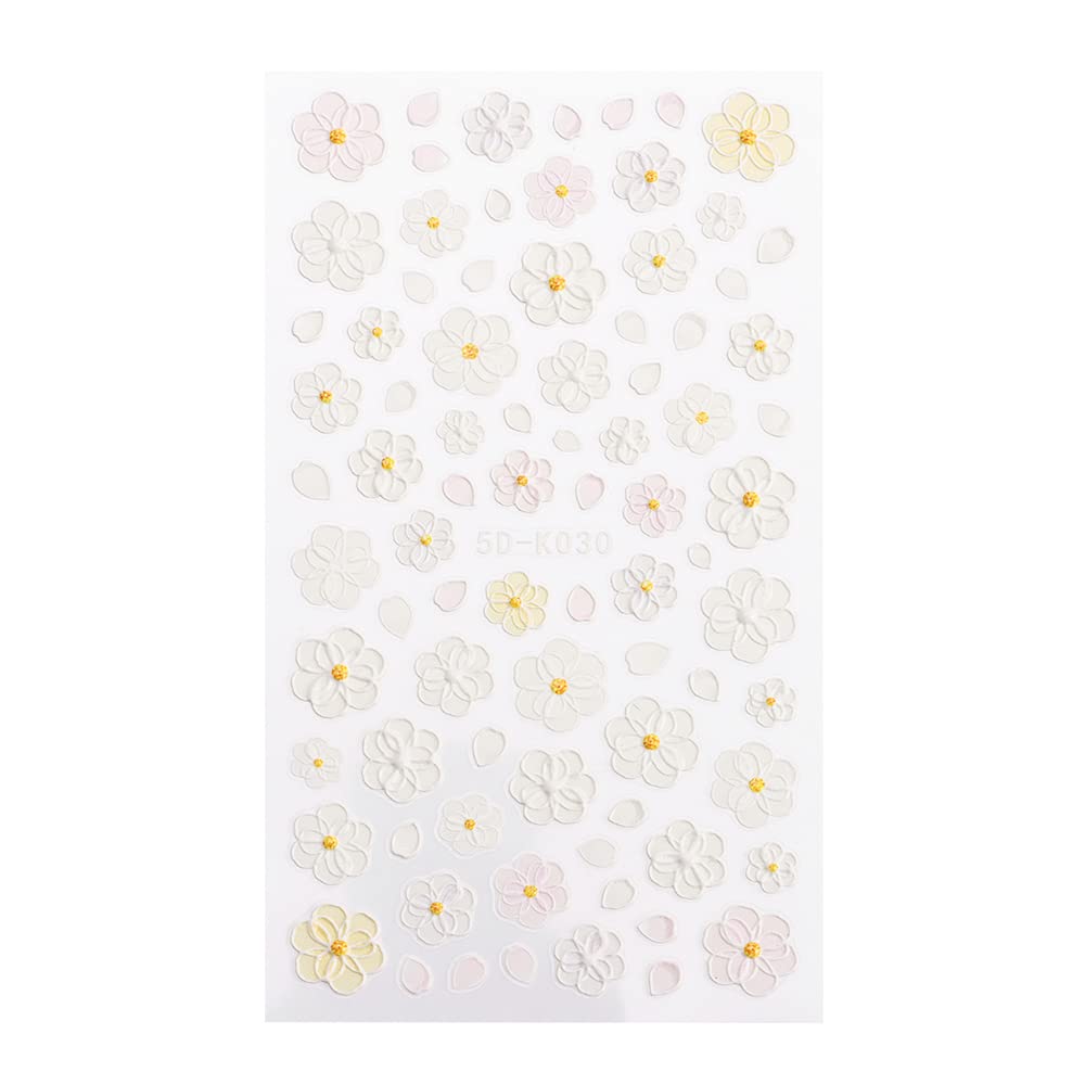 Fashion Manicure Decor DIY Woman White Flowers Butterfly-shape Design Water Transfer Stickers 5D Embossed Nail Sticker Nail Art Decoration(5D-K030)
