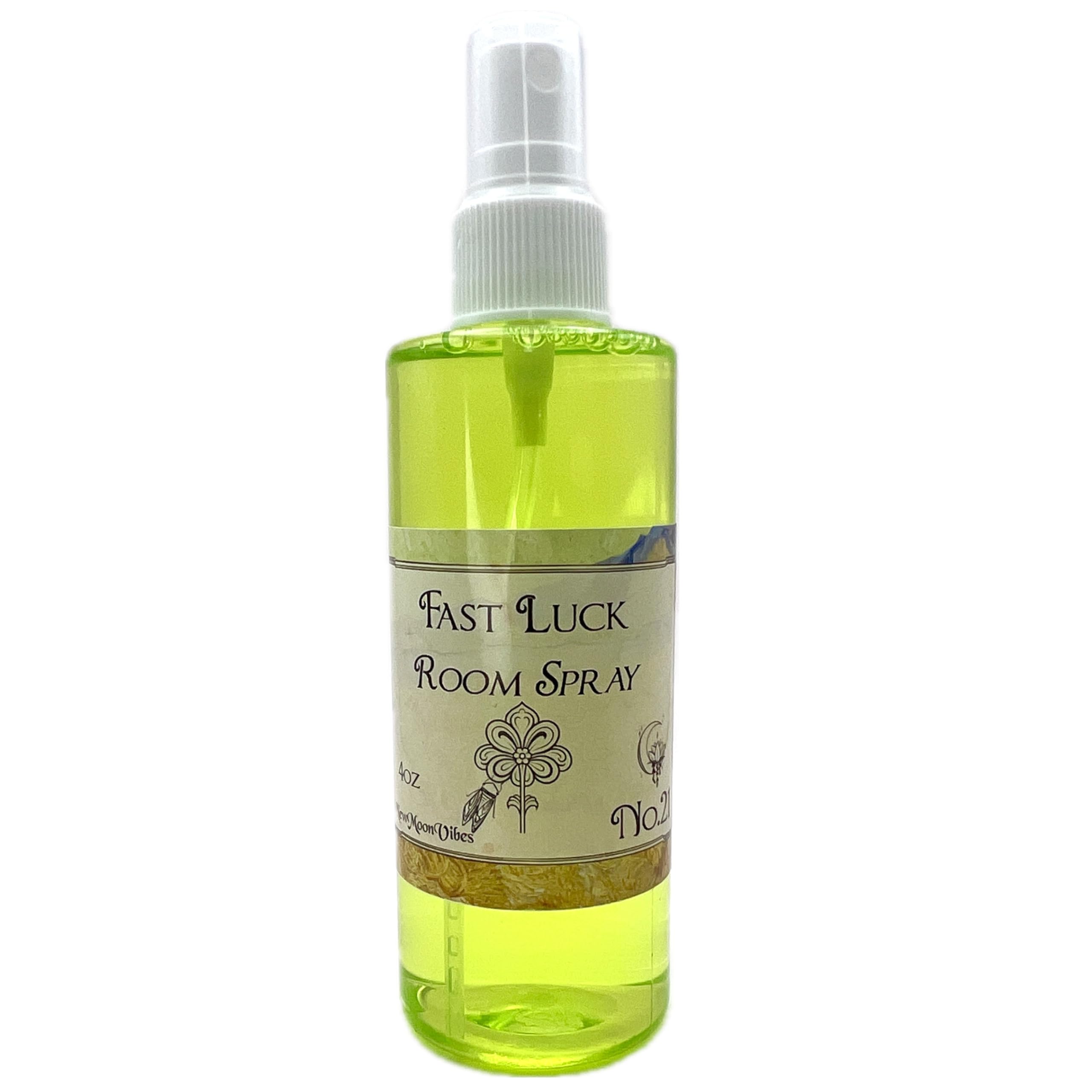 Immerse yourself in the enchanting realm of Fast Luck Room Spray, a meticulously crafted blend designed to elevate your spirit and infuse your surroundings with a wave of positive energy. This powerful concoction is a symphony of cinnamon, bay leaves, cloves, and jasmine, each ingredient handpicked for its spiritual significance and potential to draw luck and prosperity into your life. Cinnamon is celebrated for its fiery energy, capable of igniting the flames of success and amplifying your personal power. Its warm, invigorating scent is believed to accelerate the manifestation of your desires, bringing swift and positive changes. Bay Leaves , a symbol of wisdom and protection, are revered for their ability to purify your environment and ward off negative influences. Their presence in the spray creates a barrier against misfortune, paving the way for blessings to flow freely into your space. Cloves , with their potent protective properties, are used to attract good luck and prosperity. Their intense aroma is thought to dispel negative energies, ensuring that your endeavors are supported by positive forces. Jasmine , the essence of love and beauty, envelops you in its soothing fragrance, fostering self-confidence and attracting spiritual love. Its inclusion in the spray promotes harmony and helps in aligning your energy with the vibrations of success. Incorporating Fast Luck Room Spray into Your Rituals: - Candle Rituals : Anoint candles with the spray to enhance their energy during manifestation rituals. - Space Clearing : Spritz in the corners of a room or any space needing an energetic lift, setting the stage for luck to enter. - Personal Belongings : Lightly mist on items such as wallets or business cards to magnetize prosperity. - Entrances : Apply near doorways to invite fortune into your home or office. - Affirmation Recitation : Use in conjunction with positive affirmations to reinforce your intentions. Visualization and Affirmation: As you mist your surroundings, visualize a golden light enveloping your space, symbolizing the arrival of prosperity and good fortune. Accompany this visualization with the affirmation, "With every spray, I attract swift luck and abundance into my life," reinforcing the power of your intentions. Remember, the Fast Luck Room Spray is sold as a curio and is for external use only, meant to enhance your daily rituals and serve as a tool in your spiritual practices. Let this magical blend be a daily reminder of your power to manifest your desires, transforming your environment into a sanctuary of positivity and opportunity.Use at home, work or any sacred space as a ritual, such as misting yourself and or the area immediately around you, enveloping yourself in a soft aroma of herb infused essential oils. Be sure to concentrate on your desired manifestation, affirmations and intentions. An easy way to manifest and remind yourself to set your intentions in your space and life. Essential oils infused with potent herbs are believed to enhance spiritual vibrations of an area they are used in. - Cinnamon swirls through the air, igniting a spark of quick success and attracting prosperity with its warm, invigorating essence. - Bay leaves, when released into the atmosphere, serve as powerful conduits for wishes, beckoning fortune and providing protection to create a shield of positive energy. - Cloves, with their rich, piquant aroma, pierce the veil of misfortune, ushering in an aura of protection and clearing the path for good luck to flow freely. - Jasmine, in its delicate bloom, whispers of love and money, its sweet fragrance soothing the spirit while drawing in abundance and romantic bliss. Fast Luck Room Spray is meticulously formulated fresh upon order, capturing the essence and potency of each ingredient at its peak for your spiritual rituals. Crafted with a blend of essential oils, each bottle is not only infused with these natural essences but also charged with positive intentions and blessings. This carefully curated concoction aids in your pursuit of fortune and success, offering a vibrant, energetic signature to support your intentions. New Moon Vibes Essential Oil Infused Misting Room Sprays are commonly used to enhance everyday desires, dreams, needs, and focus your personal intentions.
