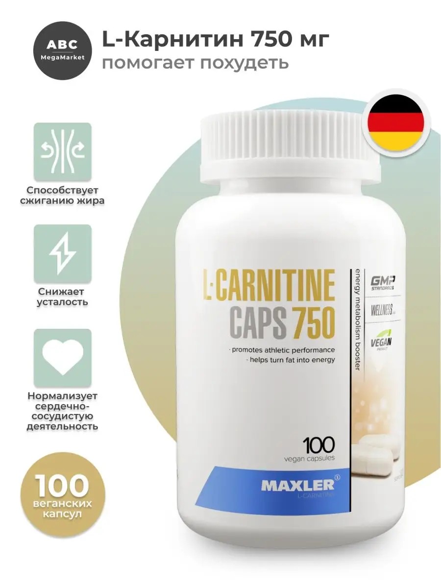 Л-Карнитин капсулы 750 мг универсальный продукт интенсивно снижающий количество подкожного жира и повышающий результативность при занятиях спортом. L-Карнитин - аминокислота, витаминоподобное вещество, используемое организмом для производства энергии из свободных жирных кислот. БАД Карнитина снижает усталость, повышает выносливость. Пищевая добавка способствует снижению усталости, быстрому восстановлению, поддерживает работоспособность на оптимальном уровне, способствует хорошему настроению, улучшает обмен веществ, за счет метаболизма жиров снижает избыточную массу тела. Эль карнитин капсулы улучшает работоспособность сердца, стимулирует нервную деятельность, снижает повреждающее действие стресса, улучшает устойчивость к инфекционным заболеваниям, стимулирует иммунитет. Максимальное жиросжигающее действие Карнитина Макслер проявляется в сочетании с интенсивными тренировками - занятиями аэробикой или фитнесом. Макслер Карнитин - жиросжигатель для похудения, прекрасно подойдет как женщинам, так и мужчинам, которые следят за своей фигурой. Продукт идеально подходит для всех видов спорта. Рекомендации по применению принимайте по 1 капсуле дважды в день утром и перед тренировкой.