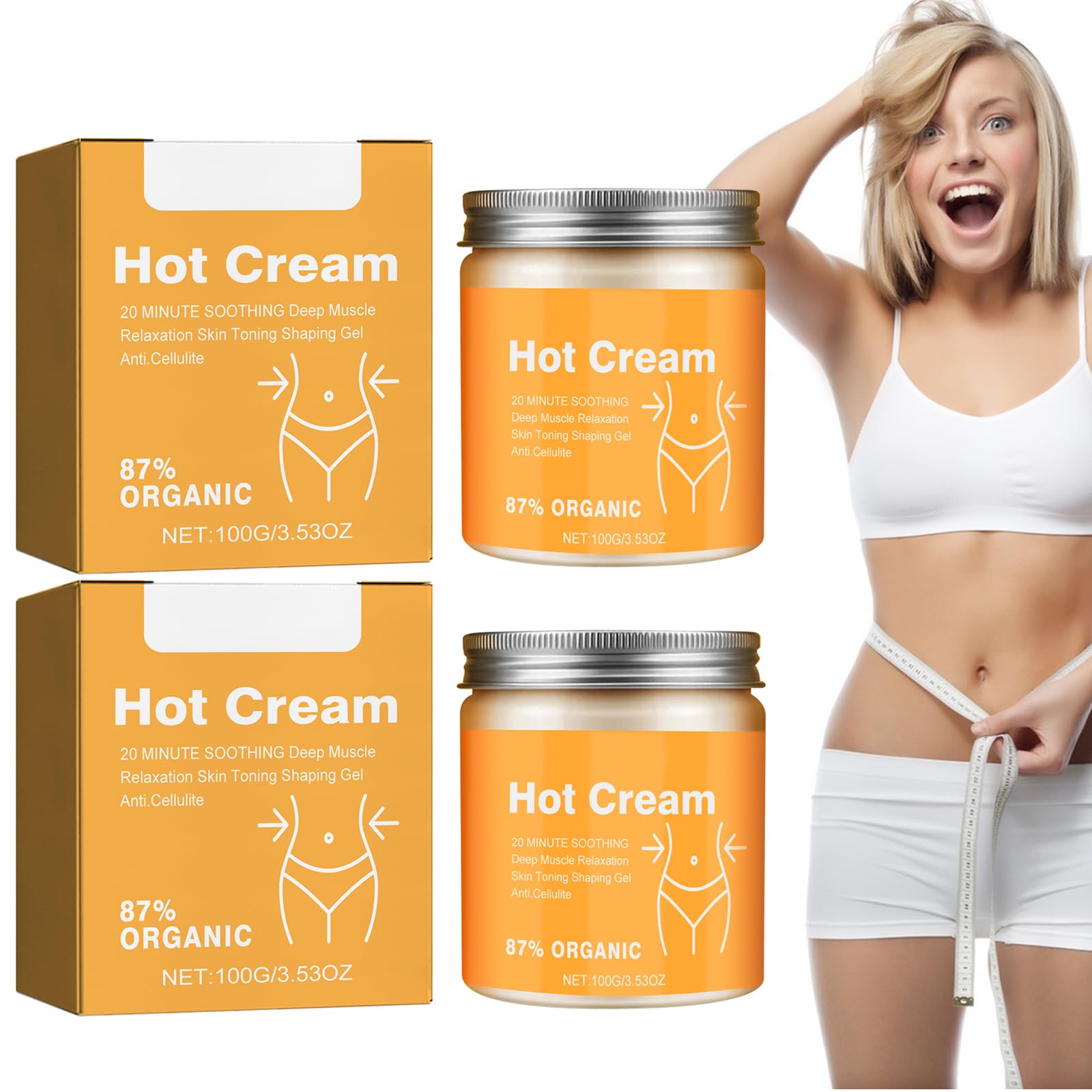 Cream for fat burning and weight loss SAFETY WARNING Avoid the eyesPRODUCT SAFETY GUARANTEE: Our slimming cream has been subjected to strict quality testing and clinical verifications. It contains no hormonal components, is gentle and non-irritating to the skin and is suitable for use on all skin types. Don't worry about allergies or side effects and enjoy the soothing slimming care. APPLICATION OF THE PRODUCT: Applying our slimming cream is simple and comfortable. Apply to cleansed skin, apply a suitable amount of the product evenly to the area to be shaped and massage gently until completely absorbed. It is recommended to use it once a day in the morning and evening. With proper exercise and diet control, the effect becomes more apparent. Deep nourishment: In addition to its slimming effect, our slimming cream can also deeply nourish the skin and keep it hydrated and soft. The rich vitamins and antioxidants help repair damaged skin, prevent wrinkles and sagging skin and make your skin look youthful and younger. Natural Ingredients: Our slimming cream uses natural plant extracts and ingredients, does not contain any harmful chemicals and is absolutely safe and non-irritating. The tea polyphenols and caffeine help burn fat and improve skin elasticity, making your skin smoother and tighter. Highly Effective Slimming Cream: Our slimming cream uses advanced formula and technology that can effectively help you reduce fat deposits and create perfect body curves. The unique ingredients can accelerate fat metabolism and promote blood circulation, so you can see clear weight loss results in a short time.Crème voor vetverbranding en afvallen, afslankende crème, 2 stuks, vetverbrandingscrème voor vrouwen en mannen, afslankende crème voor het hete lichaam, perfect voor het vormen van taille, buik en Crème voor vetverbranding en gewichtsverlies VEILIGHEIDSWAARSCHUWING Vermijd de ogenPRODUCTVEILIGHEIDSGARANTIE: onze afslankcrème is onderworpen aan strenge kwaliteitstests en klinische verificaties. Het bevat geen hormonale bestanddelen, is zacht en niet irriterend voor de huid en is geschikt voor gebruik bij alle huidtypes. Maak je geen zorgen over allergieën of bijwerkingen en geniet kalmeert van de slankverzorging. TOEPASSING VAN HET PRODUCT: Het aanbrengen van onze afslankcrème is eenvoudig en comfortabel. Op een gereinigde huid aanbrengen, een geschikte hoeveelheid van het product gelijkmatig op de te vormen plaats aanbrengen en zachtjes inmasseren tot het volledig is opgenomen. Het wordt aanbevolen om het eenmaal per dag 's ochtends en 's avonds te gebruiken. Bij de juiste beweging en dieetcontrole wordt het effect duidelijker. Diepe voeding: naast zijn afslankende werking kan onze afslankende crème de huid ook diep voeden en gehydrateerd en zacht houden. De rijke vitaminen en antioxidanten helpen beschadigde huid te repareren, voorkomen rimpels en slappe huid en laten je huid er jeugdig en jonger uitzien. Natuurlijke ingrediënten: onze afslankcrème maakt gebruik van natuurlijke plantenextracten en ingrediënten, bevat geen schadelijke chemicaliën en is absoluut veilig en niet irriterend. De thee-polyfenolen en cafeïne helpen bij de vetverbranding en verbeteren de huidelasticiteit, waardoor je huid gladder en strakker wordt. Zeer effectieve slankheidscrème: onze afslankcrème maakt gebruik van een geavanceerde formule en technologie die je effectief kan helpen vetophopingen te verminderen en perfecte lichaamsrondingen te creëren. De unieke ingrediënten kunnen het vetmetabolisme versnellen en de doorbloeding bevorderen, zodat je in korte tijd duidelijke resultaten kunt zien bij het afvallen.