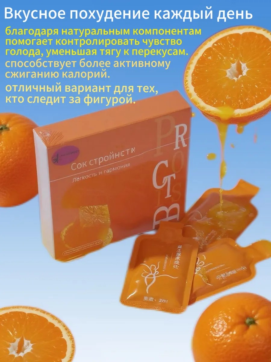 Удобная форма выпуска в стиках по 30 мл позволяет брать напиток с собой и употреблять в любое время. Сладкий апельсиновый вкус сделает процесс похудения приятным и комфортным.