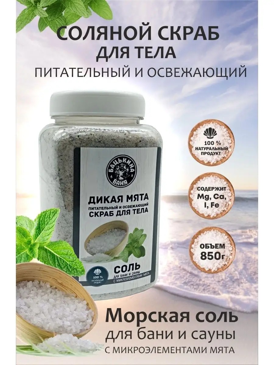 Salt body scrub. Thanks to its microelements, the scrub not only supports cell renewal but also nourishes the skin, enhancing its protective functions, thereby helping to improve health and maintain youth. The natural essential oil included in the scrub has a tonic effect and helps to feel a surge of strength and energy. Recommended for use in weight loss programs. Directions for use in the bathhouse: soak the salt in a container until it becomes a paste (80 ml per 200 g of salt), warm it in a steam room or sauna for 10-15 minutes, rub the skin with the prepared salt mixture using gentle circular motions. You can use a bath mitt or a soft-bristled brush, then let the skin rest in the steam room or sauna, then rinse with water. You can steam with a birch whisk before and after salt therapy. The scrub can also be used at home. Salt scrub. Bath scrub. Salt body scrub.