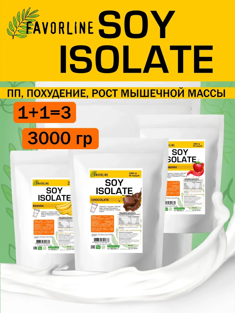 Soy Isolate Соевый протеин 3x1000 гр Банан Клубника Шоколад