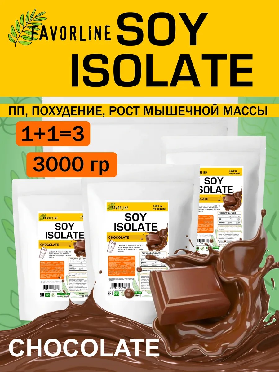 FAVORLINE Soy isolate soy protein 3x1000 gr Chocolate
