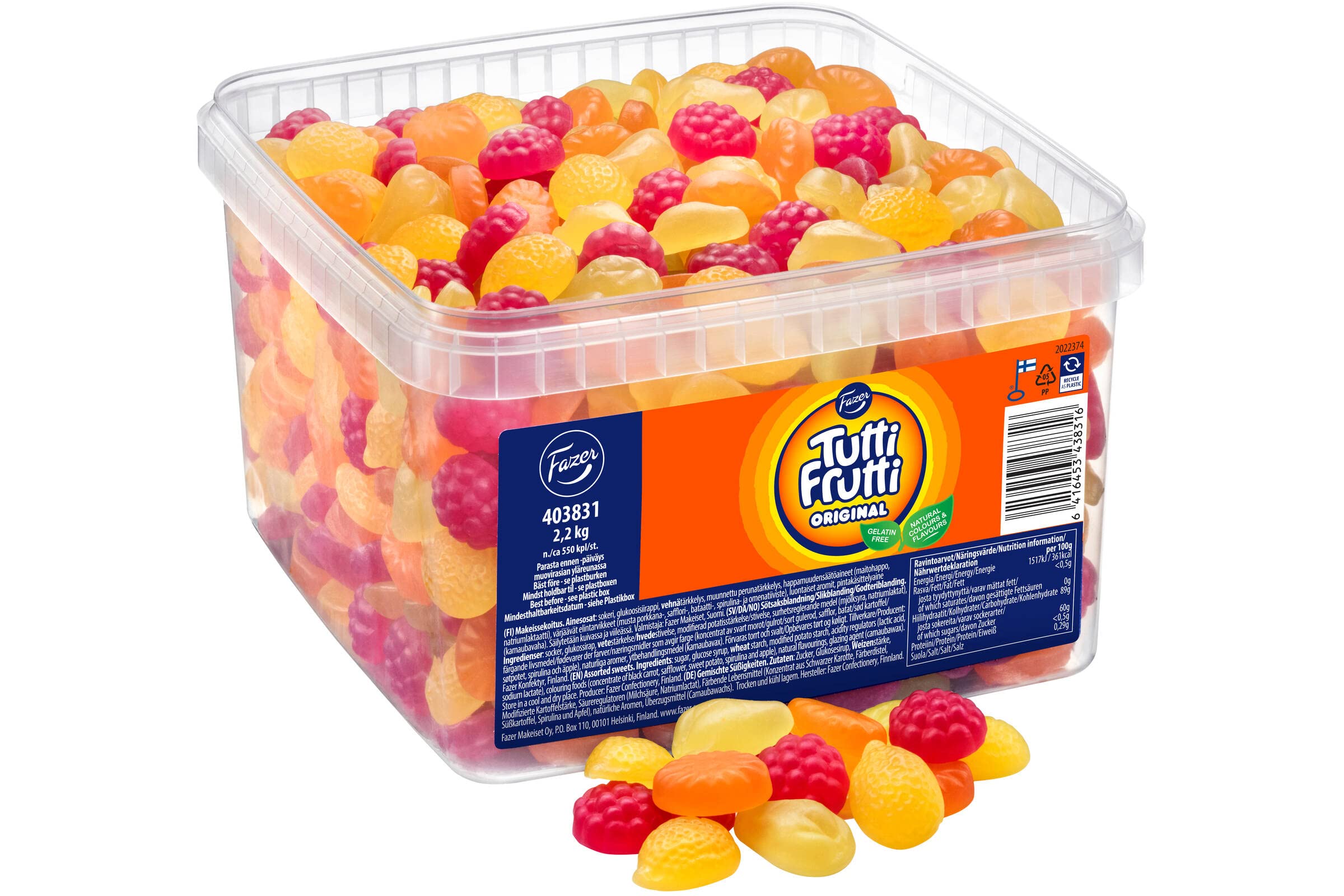 Fazer Tutti Frutti - Fazer 2,2 kg XXL – Boîte de bonbons – Grands emballages de bonbons à fruits et de fruits sans gélatine.