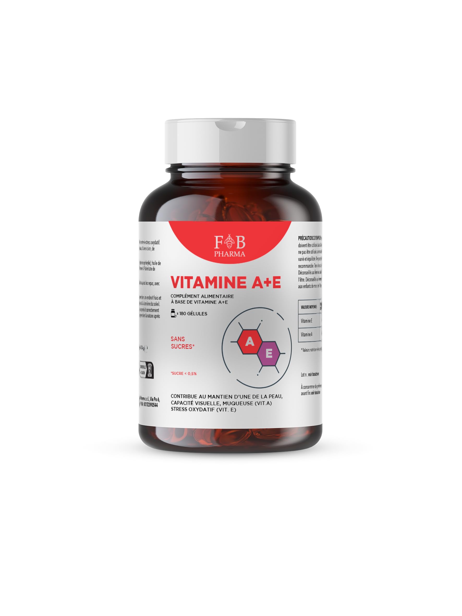 SOFTGELS FORMULA The composition of the SOFTGEL capsules allows for better absorption by the body, easy to swallow and produced with quality ingredients, respecting all current regulations. 180 capsules Better absorption Easy to swallow Quality formula VITAMIN A E DIETARY SUPPLEMENT 1247mg, 180 CAPSULES IN SOFTGELS FORMULA Complete formula designed for the protection of the immune system and anti-aging formula. INGREDIENTS vitamin A 1000 mcg vitamin E 47mgRECOMMENDED DOSES: It is recommended to take 1 pearl per day, preferably after meals. SOFTGELS FORMULA: The composition of the SOFTGEL pearls allows for better absorption by the body. Italian formula, studied by our galenic pharmacists, produced with quality ingredients and complying with all current regulations. Vitamin A E: Our high-potency vitamin A and vitamin E supplement contributes to the maintenance of normal skin and vision, supports the normal immune system, and aids in male and female fertility. Vitamin E is an essential nutrient known for its antioxidant properties and for its role in supporting body health. It helps maintain hair health by promoting circulation to the scalp and skin. Vitamin A is essential for the human body and performs several vital functions such as aiding visual health, contributing to night vision, maintaining healthy skin, and aiding normal fertility and reproduction. FORMULE SOFTGELS La composition des capsules en SOFTGEL permet une meilleure absorption par le corps, faciles à avaler et produites avec des ingrédients de qualité, respectant toutes les réglementations en vigueur. 180 capsules Meilleure absorption Faciles à avaler Formule de qualité COMPLÉMENT ALIMENTAIRE DE VITAMINE A E 1247mg, 180 CAPSULES EN FORMULE SOFTGELS Formule complète conçue pour la protection du système immunitaire et formule anti-âge. INGRÉDIENTS vitamina A 1000 mcg vitamina E 47mgDOSES RECOMMANDÉES : Il est conseillé de prendre 1 perle par jour de préférence après les repas. FORMULE SOFTGELS : La composition des perles en SOFTGEL permet une meilleure absorption par le corps. Formule italienne, étudiée par nos pharmaciens galéniques, produite avec des ingrédients de qualité et respectant toutes les réglementations en vigueur. Vitamine A E : Notre complément à haute teneur en vitamine A et vitamine E contribue au maintien d'une peau et d'une vision normales, soutient le système immunitaire normal et aide à la fertilité masculine et féminine. La vitamine E est un nutriment essentiel connu pour ses propriétés antioxydantes et pour son rôle dans le soutien de la santé du corps. Elle aide à la santé des cheveux en favorisant la circulation du cuir chevelu et de la peau. La vitamine A est essentielle pour le corps humain et remplit plusieurs fonctions vitales telles que l'aide à la santé visuelle, la contribution à la vision nocturne, le maintien d'une peau saine et l'aide à la fertilité et à la reproduction normales.