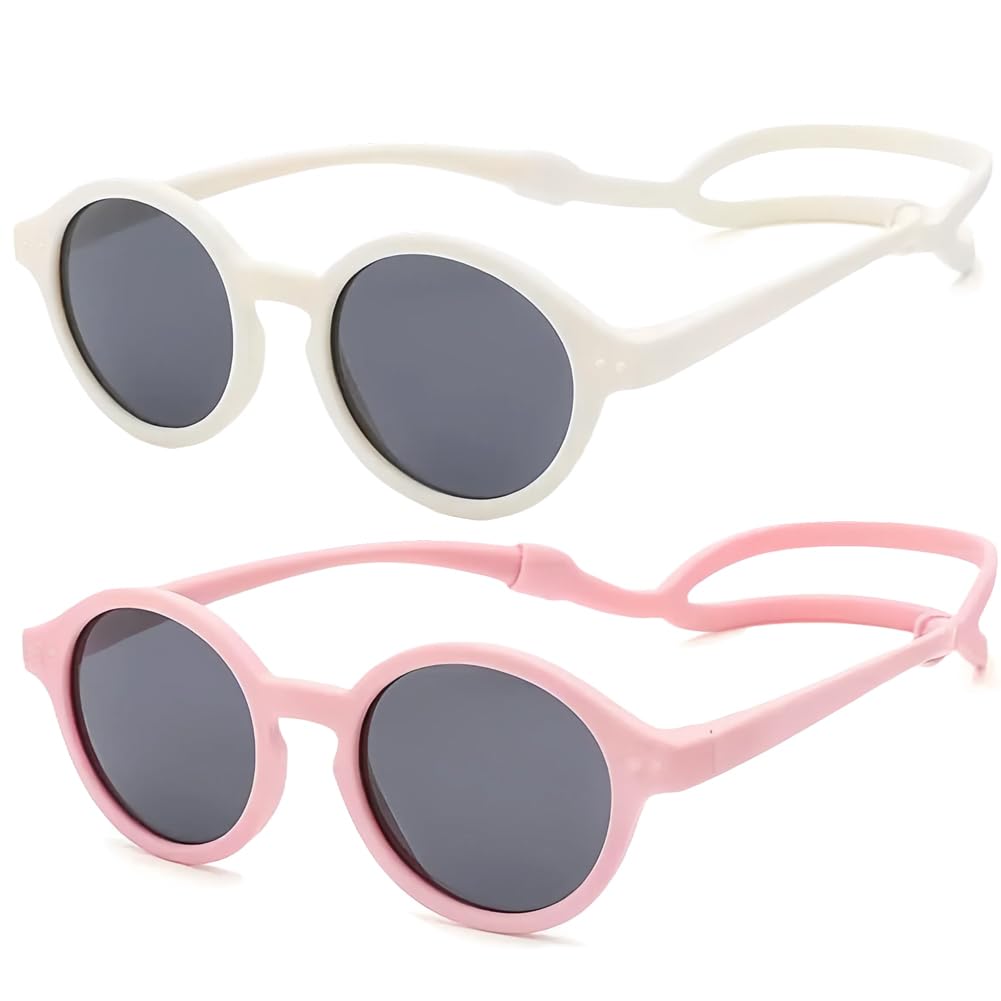 FBHLZ Baby polarized sunglasses UV400 with anti-falling headband TPEE material UV proof suitable for babies 0-12 Months White+pink Grey