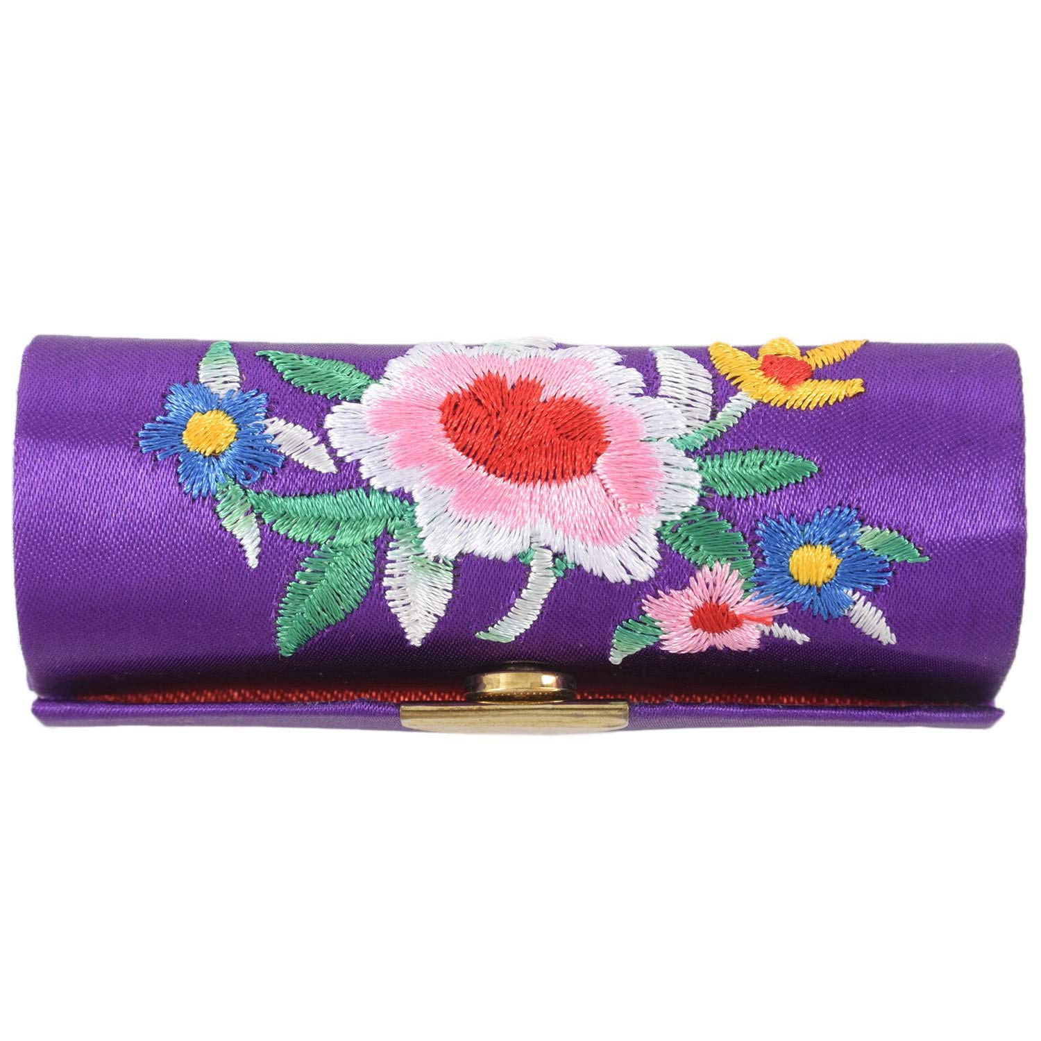 Fcuajdkq Women's Floral Embroidered Lipstick Case Purple