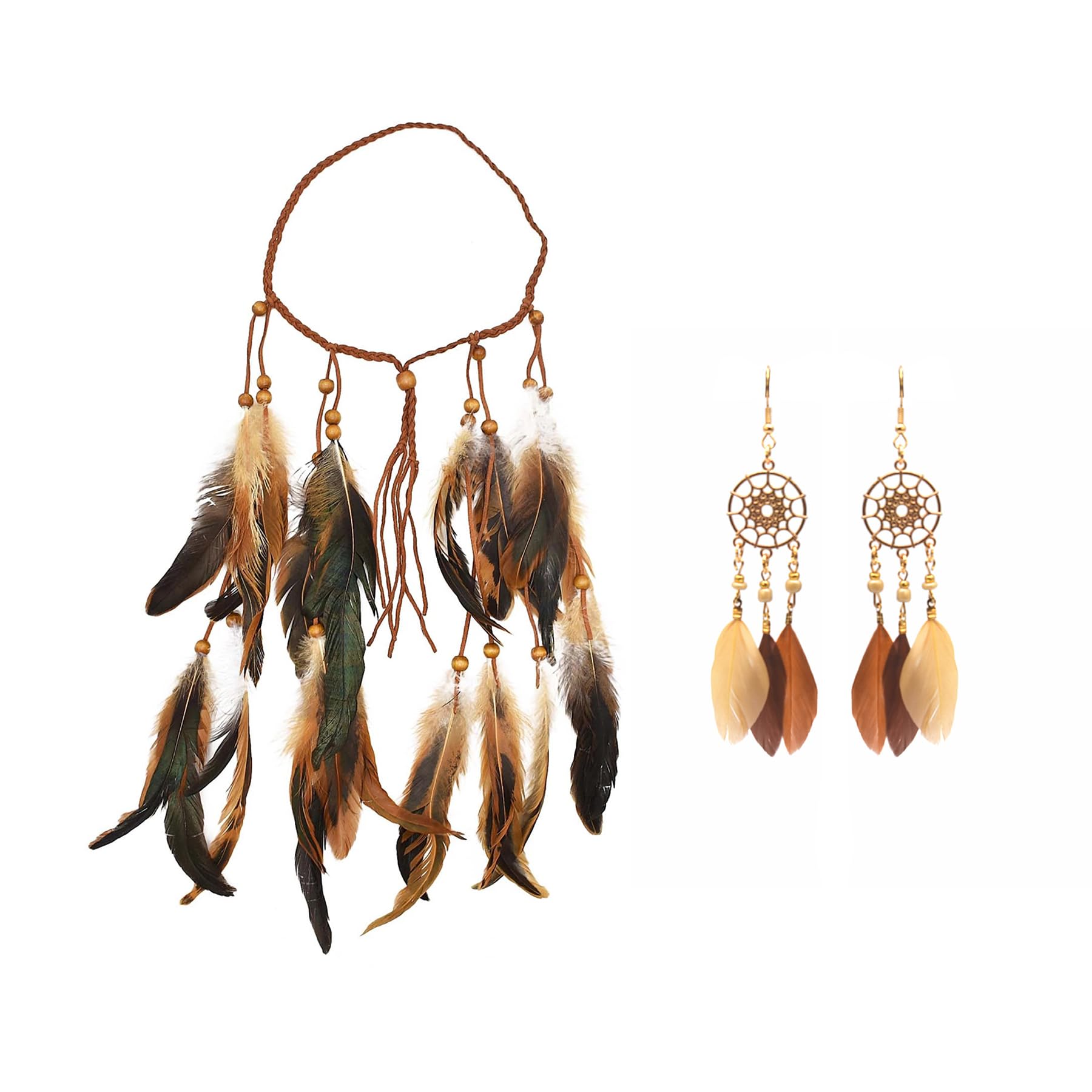 Elevate your style effortlessly with this high-quality feather headband. Crafted from hemp rope, wood beads, and lifelike faux feathers, it offers a realistic appearance. The adjustable size and stylish bohemian design make it perfect for various occasions, from boho-chic outfits to costume accents. Its comfortable structural design and versatility make it ideal for events, photo shoots, cosplay, and more. Turn heads with this trendy accessory that's perfect for tribal, native American, and masquerade costumes.VERSATILE USAGE - deal for tribal fancy dress, native American costumes, masquerade events, and more, this headband is a versatile addition to photo shoots, performances, cosplay, festivals, and carnivals. Turn heads with this trendy accessory. TRENDY AND COMFORTABLE - This headband features a well-thought-out structural design for a comfortable wearing experience. Elevate your look effortlessly for events, from evenings out to art deco parties. BOHEMIAN ELEGANCE - Embrace a stylish bohemian ethnic design, perfect for boho-chic outfits, costume accents, and natural everyday styles. ADJUSTABLE SIZE - With a maximum girth length of 66cm, this feather headband is customizable to fit most people, thanks to adjustable beads at the back. GOOD MATERIAL - Crafted from high-quality hemp rope, wood beads, and lifelike faux feather pendants, showcg exquisite workmanship for a realistic appearance.