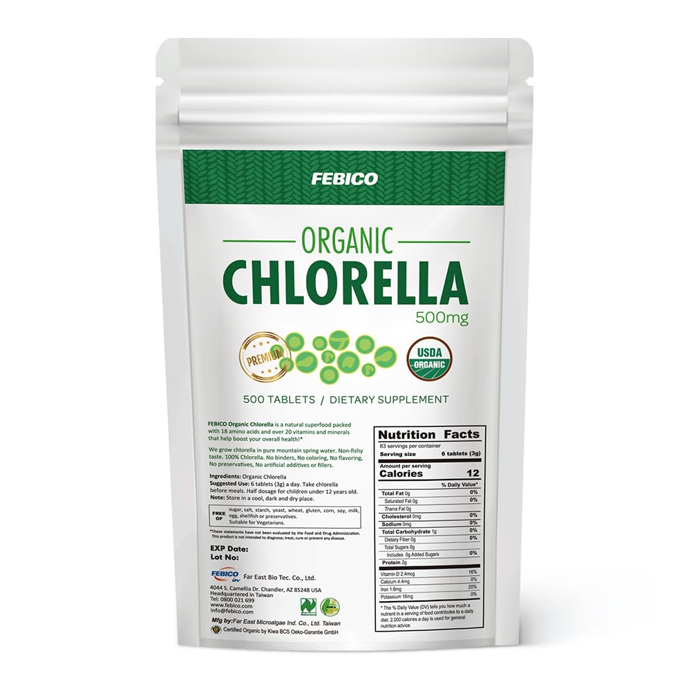 FEBICO Chlorella Tablets 500mg 500ct 83 Days - USDA Organic Vegan Food Non-GMO Detox Broken Cell Wall by Taiwan
