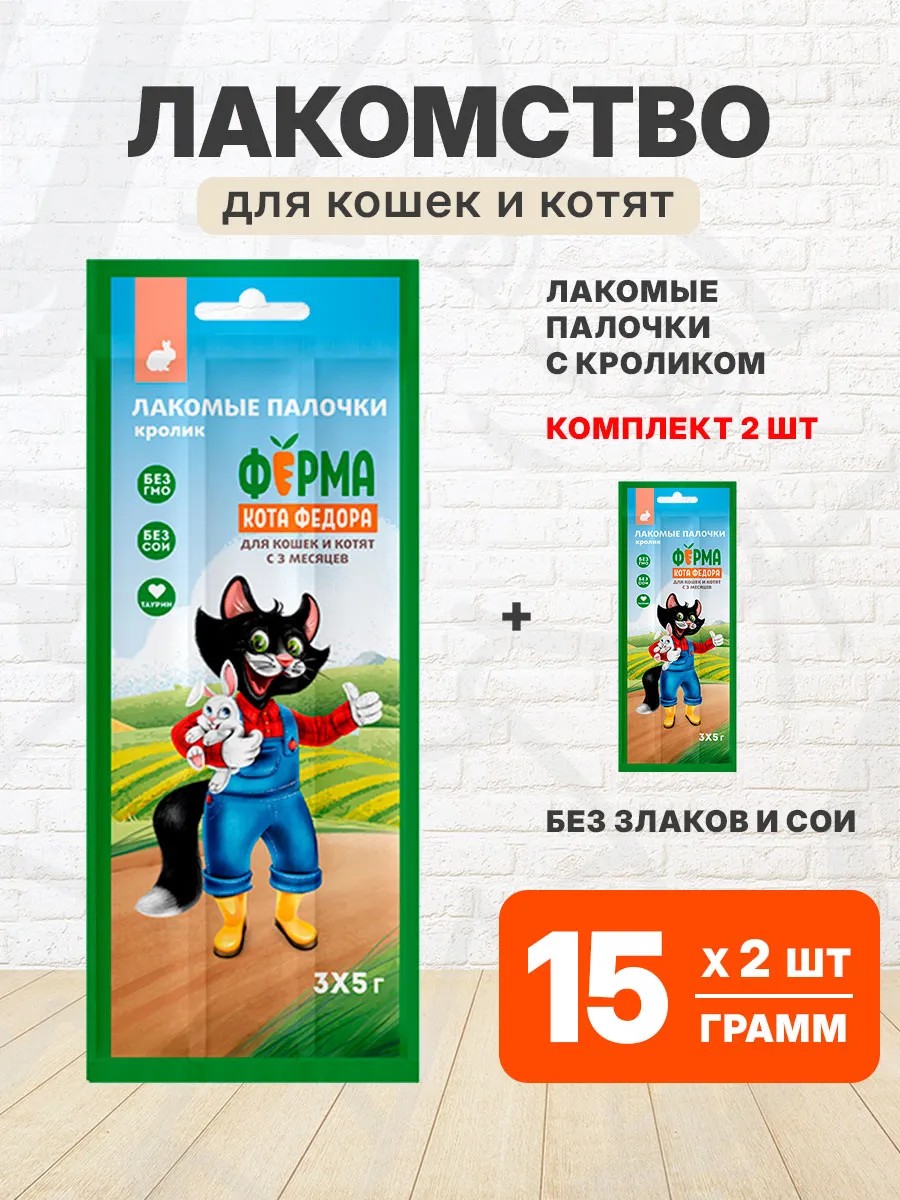 ФЕРМА КОТА ФЕДОРА Лакомство для кошек и котят палочки с кроликом 15 гр 2 шт