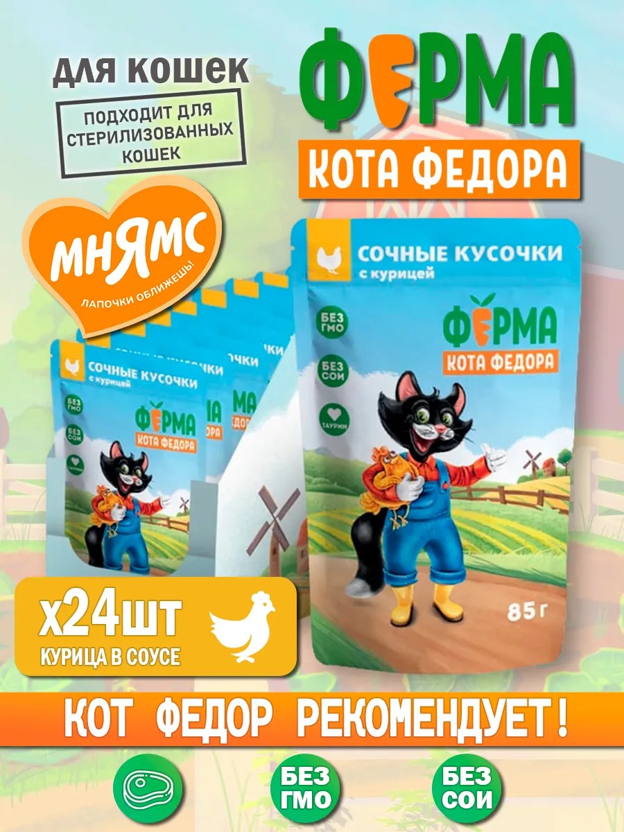 ФЕРМА КОТА ФЕДОРА Мнямс для кошек влажный с курицей 85г 24шт