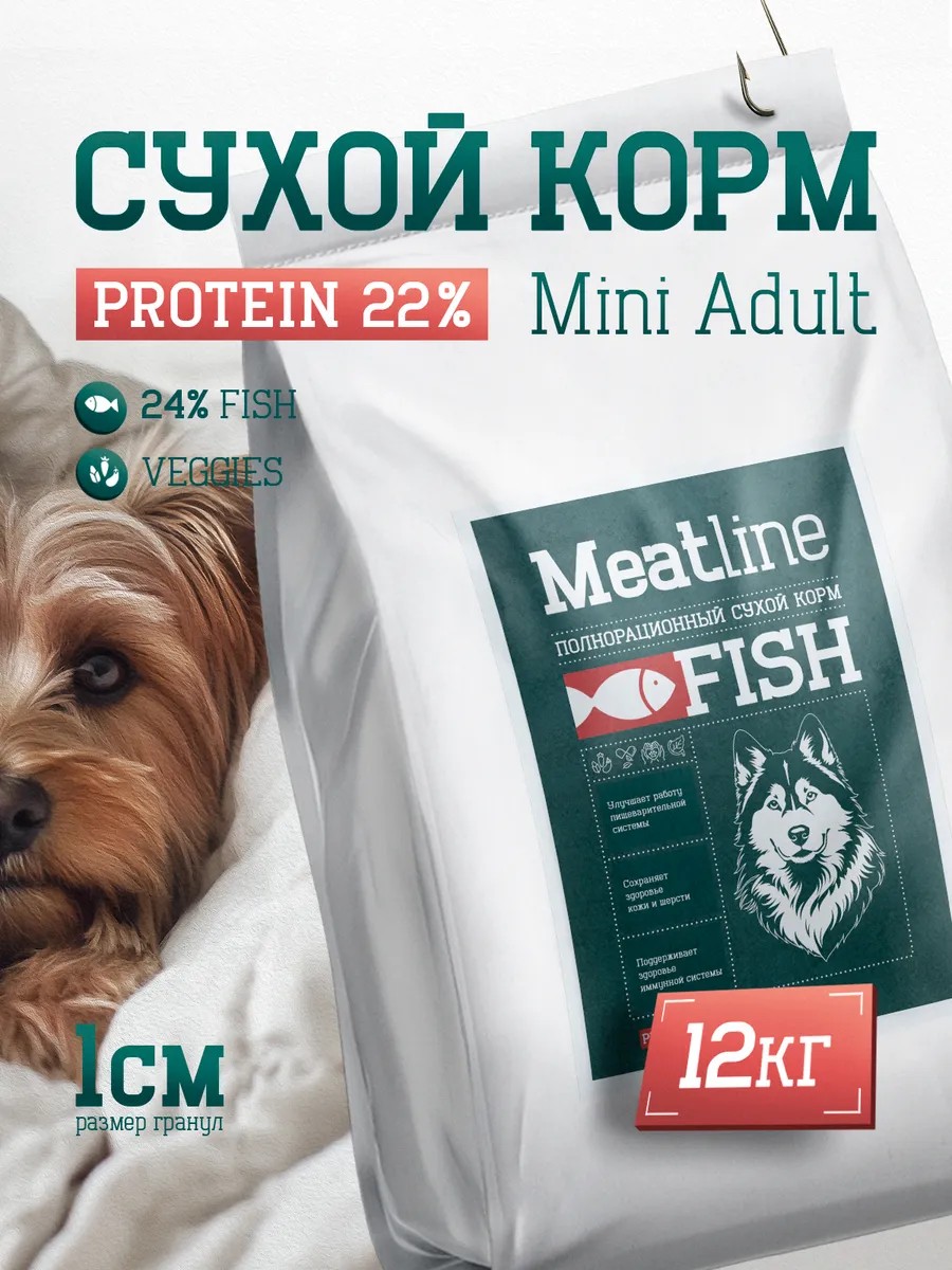 Корм для собак сухой 12 кг Рыба 24% Meatline Mini Adult 22%