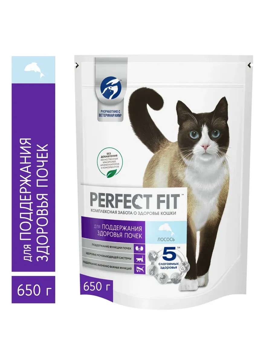 Сухой рацион PERFECT FIT "Здоровье почек" для взрослых кошек с лососем разработан специально для поддержания здоровья почек кошек.