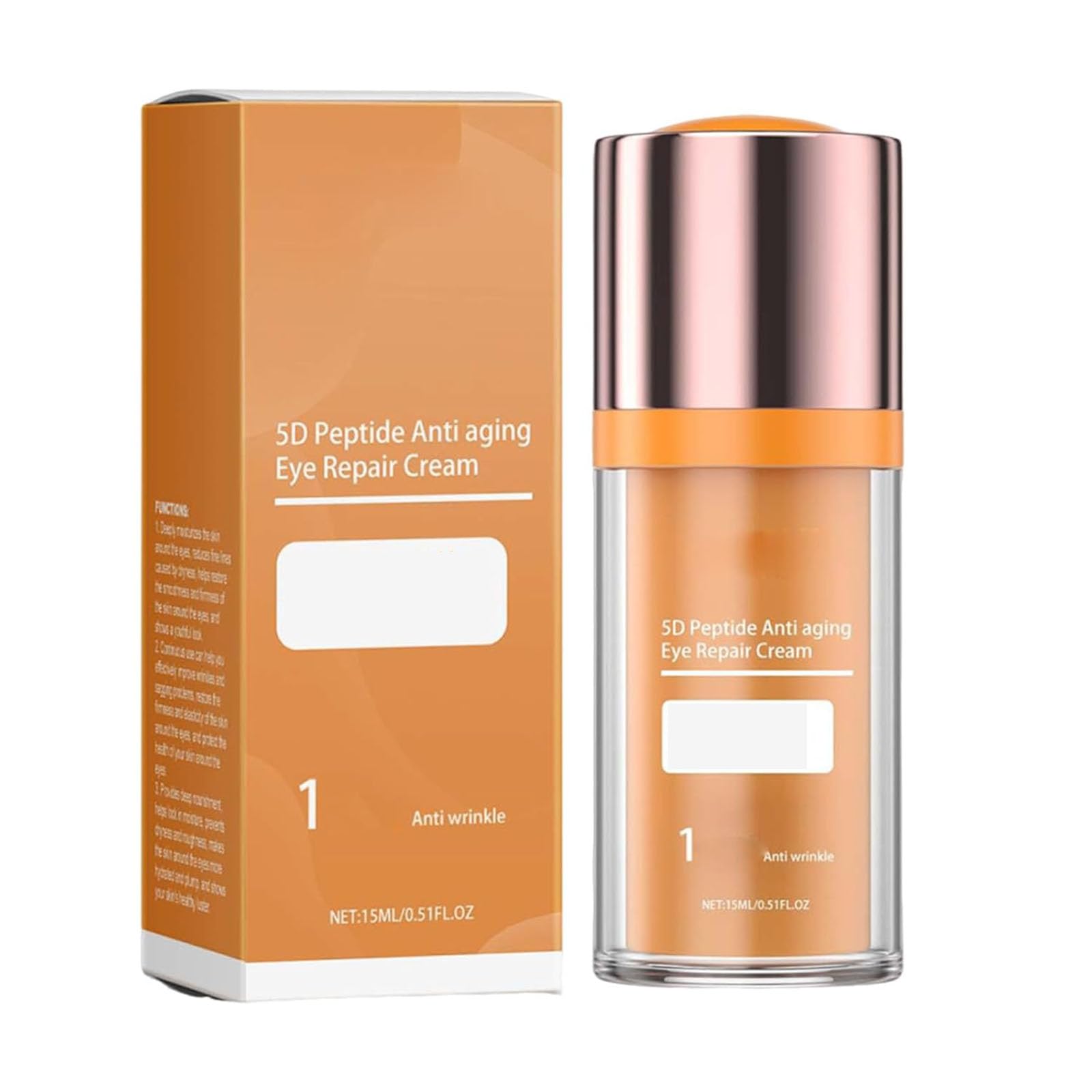 Worry-Free Eye Repair On The Go:Lightweight and exquisite bottle design,15ml capacity of feel good eye cream is just right,easily put into a cosmetic bag or pocket,anytime,anywhere to meet the needs of intensive eye repair on business trips,travel or daily commuting. How to use:Take a pea-sized amount of eye cream for wrinkles on your fingertips and gently pat the puffy eyes and eyebrows. Potent Peptides:Feel 5d peptide eyecream enriched with powerful peptides to effectively combat multiple signs of aging the eye area,smoothing and de-puffing the delicate eye area. Dark Circle Diminisher:The feel 5d peptide eye cream's unique formula effectively reduces the appearance of dark circles and dullness the eyes,eye cream anti aging revealing brighter,more radiant skin. Rapid Wrinkle Reduction:This feel eye cream uses 5D peptide technology to visibly reduce the appearance of wrinkles and fine lines in minutes.