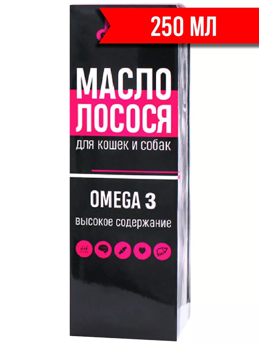 МАСЛО ЛОСОСЯ кормовая добавка для собак и кошек 250 мл FeelGOODМасло лососевое Омега-3 для собак и кошек.Масло лосося FeelGOOD – это 100 % натуральное масло холодного отжима из рыб лососевых пород.В масле лосося FeelGOOD содержатся в высоком количестве незаменимые для здоровья животного жирные кислоты Омега-3. Эти кислоты не синтезируются в организме животного, поэтому крайне необходимо для здоровья и долголетия домашнего питомца добавлять масло лосося FeelGOOD в рацион.Ключевые особенности:• Положительное воздействие на умственные способности и зрение.• Более густая и блестящая шерсть, здоровая кожа.• Снижение риска появления воспалительных процессов в суставах.• Улучшение работы печени и поджелудочной железы.• Уменьшение вероятности появления сердечно-сосудистых заболеваний.• Нет ограничений по применению.Рекомендовано:• Собакам и кошкам всех возрастов.• Особенно необходимо в период взросления.• Можно давать беременным и лактирующим животным.• Рекомендовано даже для бесшёрстных пород кошек и собакам с мутацией гена MDR1.Способ применения:Рекомендуется добавлять в натуральный или сухой корм из расчёта:• кошки и собаки до 5 кг - 2 мл суточная норма• кошки и собаки 5-10 кг - 4 мл суточная норма• собаки 11-23 кг - 8 мл суточная норма• собаки 24-47 кг - 12 мл суточная норма• собаки более 47 кг - 16 мл суточная нормаПримерно 2 мл = одно нажатие на дозатор.Польза масла лосося для кошек и собак не вызывает сомнений, однако стоит обратить внимание на возможные побочные эффекты от применения данного продукта. У некоторых собак может быть аллергия на лосось, а от чрезмерного употребления масла может появиться диарея или тошнота. Так же нужно быть осторожным при болезнях ЖКТ у животного.Насыщенность цвета масла от партии к партии может варьировать от светло-соломенного до оранжевого т.к. это натуральный продукт, который изготовлен из дикого лосося.
