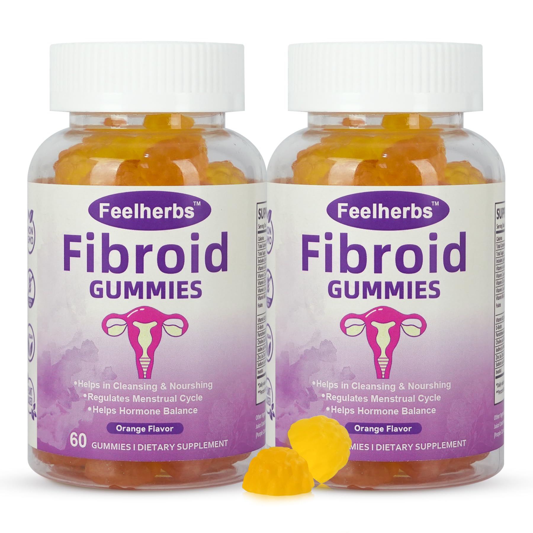 Feelherbs Fibroid Gummies for Women, Vegan Orange Flavor Gummies, Pack of 2