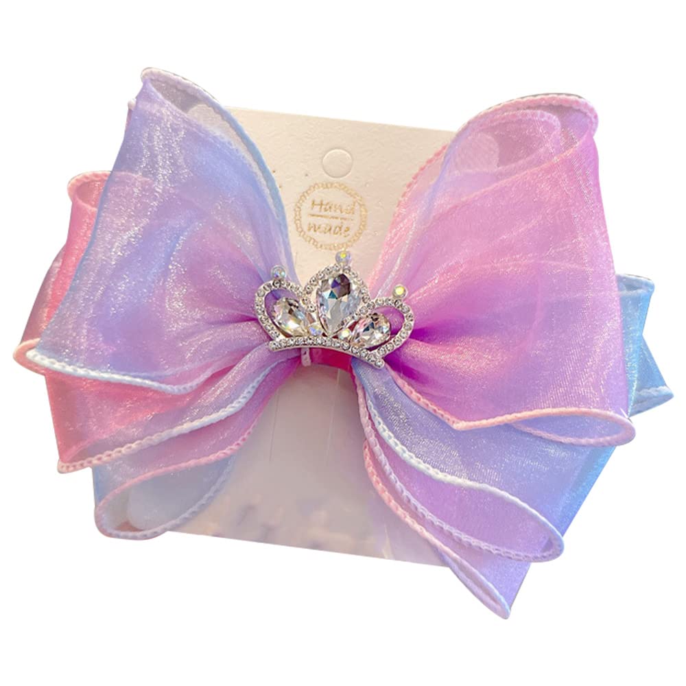 FEIFEI'S BOW Baby Girls kids Bow Princess Chiffon Diamond Crown Unicorn Colour Multi Colour Bow Hair Clip Bows Toddler Infants Party dress Costume Bow Photo Prop (Mix03)