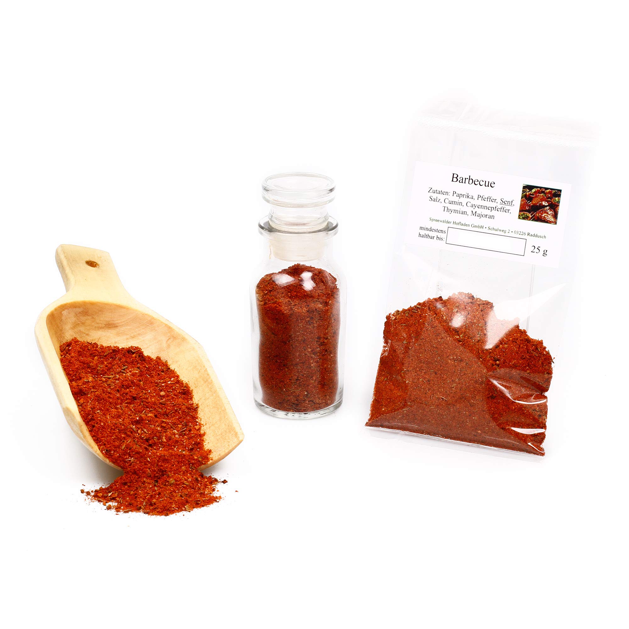 The biggest difference between the barbecue popular in Germany and the barbecue widely used in the USA is the direct heat used for grilling. With a barbecue, the meat is cooked by indirect heat and smoke over a much longer period. Barbecued meat shouldn't be too fatty, but it also shouldn't be lean, as lean meat will be too dry. Cuts of meat for barbecuing should be well-seasoned ideally, season the meat a day in advance and let it marinate properly in the refrigerator. Try this new spice blend prepared according to the original American recipe, which is garlic-free. This aromatic spice blend is ideal for marinating barbecued meat and seasoning American foods after preparation. The spice blend pairs perfectly with meat and spareribs prepared in a smoker, on a barbecue, or even in the oven. This spice blend is highly aromatic with a slightly mellow note and a touch of sweetness. A subtle smoky aroma and delicate hints of cinnamon and ginger beautifully complement this harmonious blend. The spicy composition of various spices for seasoning meat, barbecue dishes, and fish, as well as vegetables like peppers, potatoes, and corn, receive a wonderful boost thanks to this balanced blend. It's best to prepare your meat for the barbecue 3 to 5 hours before you start. Rub the meat thoroughly with the barbecue spices and let it rest in the refrigerator for at least 2 hours to allow the meat to develop a delicious, typical barbecue flavor. Delicious barbecue onions. INGREDIENTS pepper, black pepper, mustard, salt, cumin, cayenne pepper, thyme, marjoramBarbecue, sel d'épices, barbecue à épices, sauce de barbecue, mélange d'épices, mélange d'épices, barbecue, mélange d'épices, barbecue marinade, barbecue, épices, sel de steak, épices de steak, 25 gDESCRIPTION DU PRODUIT DESCRIPTION DU PRODUIT La plus grande différence entre le barbecue populaire en Allemagne et le barbecue largement utilisé aux États-Unis est la chaleur directe utilisée pour griller. Lors du barbecue, la viande est cuite par la chaleur indirecte et la fumée sur une période beaucoup plus longue. La viande d'un barbecue ne doit pas être trop grasse, mais elle ne doit pas non plus être sansée, car la viande est trop maigre et elle sera trop sèche. Les morceaux de viande pour le barbecue doivent être bien assaisonnés, dans le meilleur cas, assaisonnez la viande une journée avant et laissez-la traverser correctement dans le réfrigérateur. Essayez ce nouveau mélange d'épices préparé selon la recette américaine originale, qui est sans ail. Ce mélange aromatique d'épices est idéal pour mariner la viande du barbecue et assaisonner les aliments américains après la préparation. Parfaitement harmonise le mélange d'épices avec de la viande et des spareribs préparés dans le fumoir, sur le barbecue ou même dans la cuisine au four. Ce mélange d'épices est très aromatique avec une note légèrement feutrée accompagnée d'une touche sucrée. Un arôme légèrement fumé et des nuances délicates de cannelle et de gingembre complètent magnifiquement ce mélange d'épices harmonieux. La composition épicée de différentes épices pour assaisonner la viande, les plats de barbecue et de poisson, mais aussi les légumes comme les poivrons, les pommes de terre et le maïs reçoivent une merveilleuse note grâce à ce mélange équilibré. Il est préférable de préparer votre viande au barbecue 3 à 5 heures avant le commencement. Frottez la viande en profondeur avec les épices pour barbecue et laissez-la passer au réfrigérateur pendant au moins 2 heures pour que la viande reçoive un délicieux goût typique de barbecue. De délicieux oignons de barbecue. INGRÉDIENTS poivre, poivre, moutarde, sel, cumine, poivre de Cayenne, thym, marjolaine