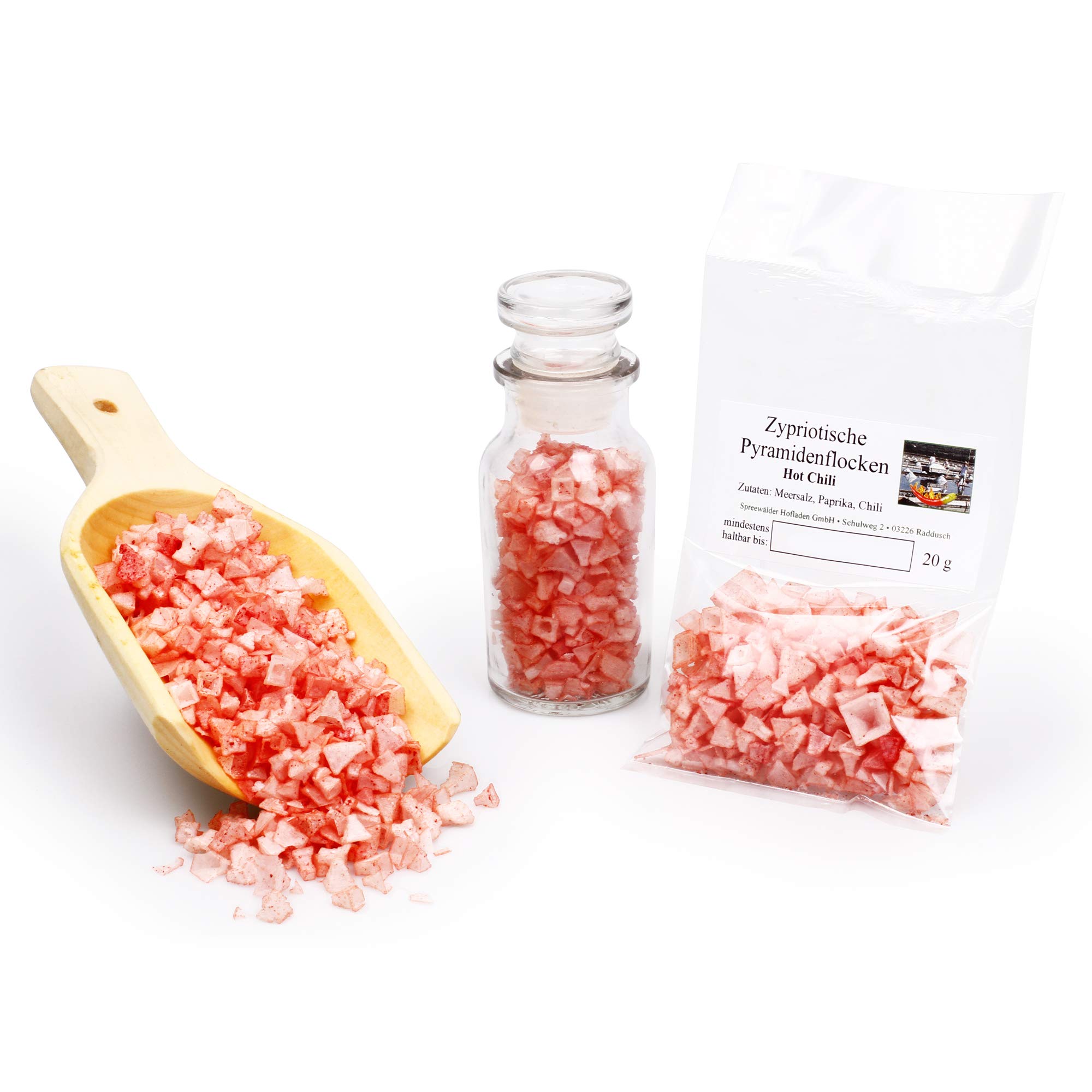 Unique pink decorative salt. Cyprus's most famous salt specialty is its unique pyramidal salt. To obtain this unique and precious sea salt from the island of Cyprus, the first seawater is diverted into shallow evaporation ponds. The wind and sun's influence constantly increase. Once a certain concentration is reached, the seawater is diverted into pans and slowly heated until it boils. Through this process, salt crystals form on the surface of the water and grow steadily through a slow boiling process. When they reach a certain size, the salt flakes are harvested and enriched with activated charcoal. This is what gives the black Cypriot pyramidal salt its unique color and typical aroma. There are very few pink salts in the world. Cyprus Pink Pyramidal Salt has a mild salty taste with delicate Mediterranean nuances. Used as a finishing salt at the end of preparation, it preserves delicate aromas and a beautiful appearance. It's also excellent as a table salt, because its exceptional color and texture will not only enhance your food but also impress your guests. Sea salt is best showcased when sprinkled on dishes just before serving, so the color and pyramidal shape remain intact, and the crinkled effect is preserved. These extraordinary black sea salt flakes are perfect for enhancing fresh salads, grilled steaks, fish, seafood, breaded dishes, raw meats like steak tartare or carpaccio, and antipasti. It's a wonderful eye-catcher for parties simply enchant your snacks and festive platters with this unique sea salt creation.Flocons de pyramides cypriotiques Hot Chili Sel de rose Sel pyramidal de Chypre Sel rose Fleur de Sel Sans gluten 20 gDESCRIPTION DU PRODUIT Sel décoratif rose unique. La spécialité de sel de Chypre la plus connue est le sel pyramidal unique. Pour obtenir ce sel de mer unique et précieux de l'île de Chypre, la première eau de mer est redirigée en bassins à évaporation plats. Le vent et l'influence du soleil augmentent constamment. À partir d'une certaine concentration, la semelle d'eau de mer est redirigée en poêles et chauffée lentement jusqu'à l'ébullition. Grâce à ce processus, les cristaux de sel se forment à la surface de l'eau et se développent de manière constante avec un processus d'ébullition lente. À partir d'une certaine taille, les flocons de sel sont récoltés et enrichis en charbon actif. Voici la couleur unique et l'arôme typique des flocons de pypriotes chypriotes noirs. Il n'y a que peu de sels roses dans le monde. Le Sel pyramidal rose de Chypre a un goût doux de sel accompagné de délicates nuances méditerranéennes. Utilisé comme sel de finition pour la fin de la préparation, cela préserve les arômes fins et l'aspect magnifique. Il est également excellent à utiliser comme sel de table, car avec la couleur et la structure exceptionnelles, vous ne serez pas seulement mis en valeur vos aliments, mais étonnera également vos invités. Le sel de mer est mieux mis en valeur si vous le mettez sur vos plats juste avant de servir, de sorte que la couleur et la forme pyramidales restent mieux intactes, et l'effet froissé ne sera pas perdu. Ces extraordinaires flocons de sel de mer noirs sont parfaits pour sublimer les salades fraîches, les steaks grillés, le poisson, les fruits de mer, le pain occupé, la viande crue comme le tatar ou le carpaccio et les antipasti. C'est un merveilleux accroche-regard pour les fêtes, tout simplement enchanter vos collations et assiettes de fête avec cette création unique de sel de mer.