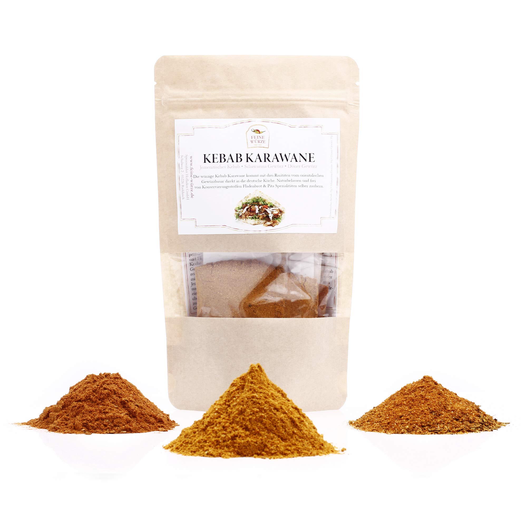 Fine spices, kebabs, Shoarma, and more. 1. Recipe suggestion: Homemade döner kebab! Ingredients: 500g lamb or beef, onion, tomatoes, vegetables, kebab seasoning, spices, salt, 1 tbsp kebab pepper, 2 tbsp dried parsley, fresh parsley, carpenter's bread oil. Preparation: Heat the oil in a large pan. Cut the meat into thin, mouth-sized strips and fry in the pan. Döner Spice Mix: This Turkish spice mix for homemade kebab can be used with all types of meat. Typical herbs and spices from Turkish cuisine for seasoning meat cubes and marinades. For roasting and grilling – delicious kebab spices! Mix with a little salt, kebab pepper, and Yemeni spice mix and roast until the meat is cooked. Warm the bread in the oven and keep it warm with meat, fresh parsley, tomatoes, onions, and other vegetables. A kebab sauce should be prepared beforehand so the flavor can develop fully. A very delicious variation is a finely spiced döner sauce. Suitable for fries, potato salad, or fried potatoes. Preparation - Kebab Sauce Ingredients: 250g yogurt, 4 tbsp extra virgin olive oil, 2 cucumbers, 2-3 cloves garlic, 2 tbsp tzatziki, 1 tsp kebab shawarma seasoning, 1 2 tbsp kebab seasoning, 1 2 tbsp sumac. Preparation: Finely chop the cucumbers and garlic, then press in the peeled garlic. Mix all the ingredients together thoroughly. (Turkish or Greek yogurt is best). If the consistency is too strong, simply add a small splash of milk, ayran, or coffee cream to thin it out, and the kebab sauce is ready. Tip: For extra flavor, leave the sauce well covered in the refrigerator for at least an hour overnight. Use fresh mint leaves to serve, which adds a touch of freshness, just like the original.Kebab Karawane Set d'épices Döner Assaisonnement Shawarma Assaisonnement kebab yéménite Cuisine orientale Qualité supérieure Sans gluten 85 gDESCRIPTION DU PRODUIT Fines épices, kebabs, Shoarma et autres. 1. Suggestion de recette : kebab jembé à la maison ! Ingrédients : 500 g de viande d'agneau ou de bœuf, d'oignon, tomates, légumes, kebab, épices, sel de neige, 1 cuillère de poivre kebab 2 cuillère à soupe de persil séché, persil frais, huile de pain de charpentier Préparation : chauffer l'huile dans une grande poêle. Coupez la viande en fines bandes adaptées à la bouche et faites frire dans la poêle. Mélange d'épices Döner : le mélange d'épices turques pour le kebab fait maison peut être utilisé avec tous les types de viande. Herbes et épices typiques de la cuisine turque pour assaisonner des cubes de viande et des marinades. Pour creuser et griller – délicieuses épices de kebab ! Mélangez avec un peu de sel, de poivre kebab et du mélange d'épices yéménite et rôtir jusqu'à ce que la viande soit cuite. Mettre le pain à la température au four et gardez-le avec de la viande, du persil frais, des tomates, des oignons et des légumes. Une sauce à kebab doit être préparée au préalable afin que l'arôme puisse mieux se développer. Une variante très délicieuse est la sauce döner de fines épices. Convient pour les frites, salades de pommes de terre ou pommes de terre frites. Préparation - sauce kebab Ingrédients : 250 g de yaourt 4 EL d'huile d'olive vierge, 2 concombres d'épices 2 à 3 ail, 2 EL Tzatziki, épices 1 cuillère à café kebab schawarma ½ cuillère à soupe de kebab ½ cuillère à soupe de sumach. Préparation : couper les concombres à épices tout petit et presser l'ail frais pelé. Mélangez soigneusement tous les ingrédients. (Le yaourt turc ou grec est le mieux adapté). Si la consistance est trop forte, ajoutez simplement une petite gorgée de lait, ayran ou crème à café pour diluer et la sauce Kebab est prêt. Astuce : pour plus d'arôme, laissez la sauce bien couverte au réfrigérateur pendant au moins une heure pendant la nuit. Utilisez des feuilles de menthe fraîches pour servir, ce qui donne une touche de fraîcheur comme l'original.