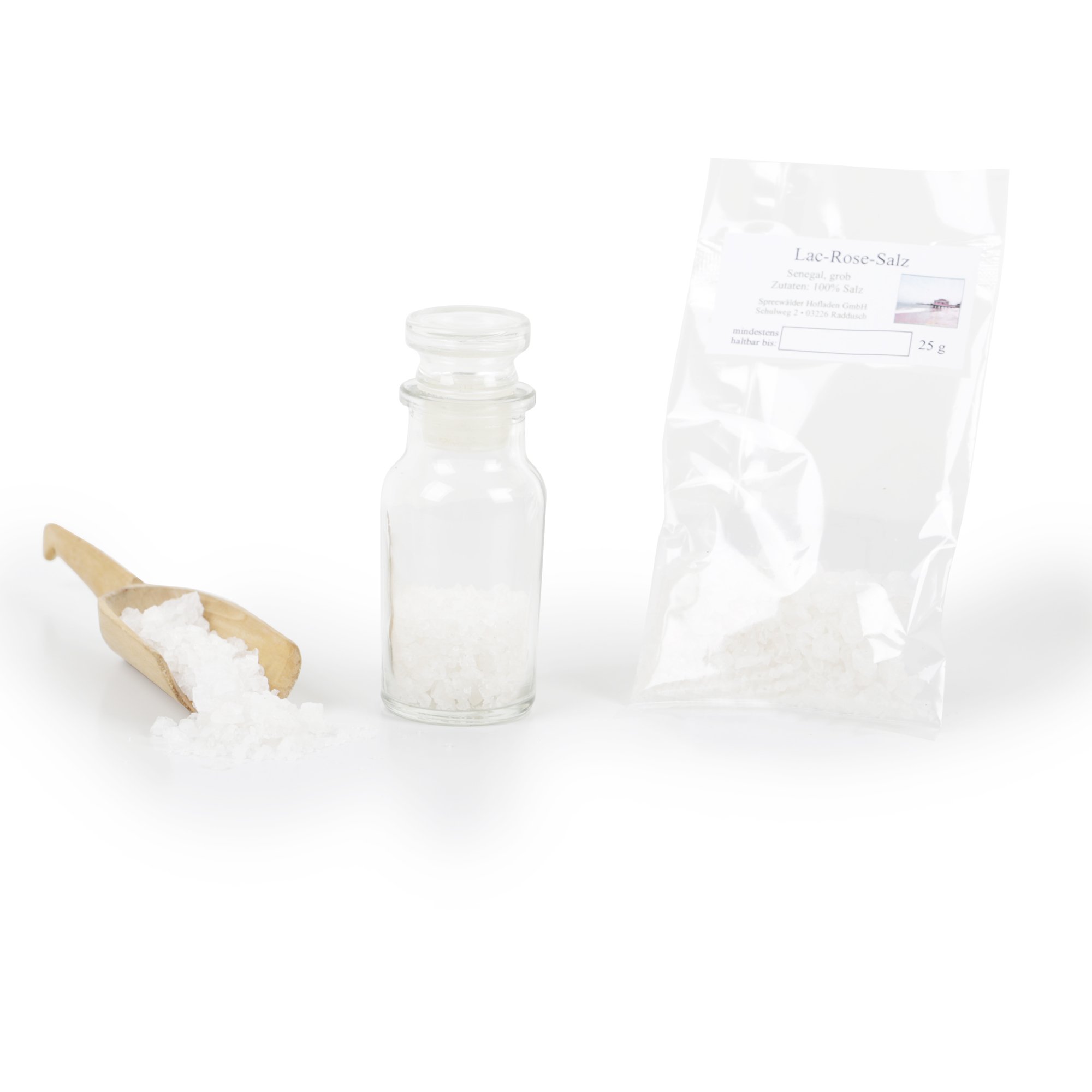 Small farmers harvest this exclusive sea salt from the Lac Rose salt flats, a UNESCO World Heritage Site. Lac Rose, on the shores of the Senegal River, is distinguished by its unique pinkish-red color caused by blue-green algae. The salt content of Lac Rose is almost identical to that of the Dead Sea. Our Lac Rose salt is characterized by its particularly mild taste and delicate aroma. Try this specialty salt with fish dishes and vegetables. A recipe suggestion: the perfect autumn salad. Ingredients: A rich salad of your choice for 4 servings - field salad, oak leaf, frisée, or Lollo Rosso, 1 ripe pear, 1 tbsp sugar, 150g pumpkin (preferably Hokaido with an edible bowl), 1 tbsp nutmeg, 10 walnuts, 300g blue cheese (Roquefort, Gorgonzola, or Gouda), 3 tbsp white wine vinegar, 7 tbsp grapeseed oil, 1 tbsp pumpkin seed oil, rose salt, pepper, sugar. Preparation: First, wash and clean the salad thoroughly. Peel the pear and cut it into edible pieces. Caramelize the sugar in a pan and sauté the pear pieces. Now, cut the pumpkin into columns with a bowl and cook it briefly in a pan with butter. Season with a little salt, nutmeg, and pepper. Next, roughly chop the walnuts and toast them in a pan. Very important: no oil. Now, whisk together a little white wine vinegar and the spice mix in a bowl, then whisk in the two oils. The dressing is ready, and you can prepare the salad and toss it with the dressing. Crumble your favorite cheese and pour it over the salad along with the pumpkin pieces, walnuts, and delicious pear. We wish you a pleasant meal and perhaps recommend serving it with fresh bread and homemade herb butter.Lac Rose sel grossier sel de mer naturel sel de l'océan non traité sel de steak sans gluten 25 gDESCRIPTION DU PRODUIT Les petits agriculteurs gagnent ce sel de mer exclusif de la mer de sel Lac Rose, un patrimoine mondial naturel Unesco. Le Lac Rose au bord du Sénégal se distingue par sa coloration rose rouge unique provoquée par les algues bleues. La teneur en sel dans le lac Rose est presque identique à celle de la mer morte connue. Notre sel Lac Rose se caractérise par son goût particulièrement doux et son arôme délicat. Essayez cette spécialité pour les plats de poisson et les légumes. Une suggestion de recettes : la salade parfaite pour l'automne. Ingrédients : salade riche de votre choix pour 4 portions - salade de champ, feuille de chêne, frisee ou lollo Rosso, 1 poire mature, 1 tl de sucre, 150 g de citrouille (meilleur Hokaido (avec bol comestible), 1 cuillère à soupe, muscade, 10 noix, 300 g de fromage bleu (Roquefort, gorgonzola ou un Gouda), 3 vinaigre de vin blanc, 7 EL huile de pépins de raisin, 1 cuillère à soupe d'huile de pépins de citrouille, sel de rose laque, poivre, sucre. Préparation : d'abord laver et nettoyer soigneusement la salade, peler la poire, couper en morceaux comestibles. Faire caraméliser le sucre dans une poêle et faire transpirer les morceaux de poire. Maintenant à la citrouille, elle doit être coupée en colonnes avec un bol et doit être cuite brièvement dans une poêle avec du beurre et dégustée avec un peu de sel, de muscade et de poivre. À l'étape suivante, les noix sont hachées grossièrement et grillées dans une poêle, très important sans huile. Maintenant, un peu de vinaigre de vin blanc est mélangé avec le mélange d'épices dans un bol avec un fouet et et les deux huiles sont ajoutées sous le fouet. La vinaigrette est prête et vous pouvez préparer la salade et y mettre la vinaigrette. Broyez le fromage de votre choix et versez la salade avec les morceaux de citrouille, les noix et la délicieuse poire. Nous vous souhaitons un bon appétit et vous recommandons peut-être de faire du pain frais. Avec du beurre aux herbes fait maison.