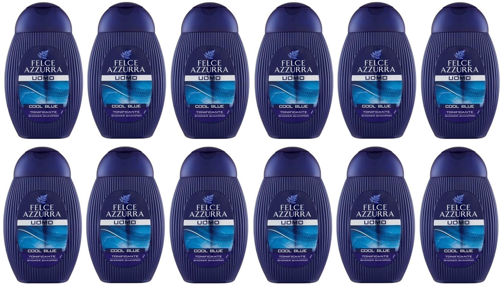 Felce Azzurra 12 x Fern Blue Shower Shampoo Men Cool Blue Toning Shower Shampoo 250ml