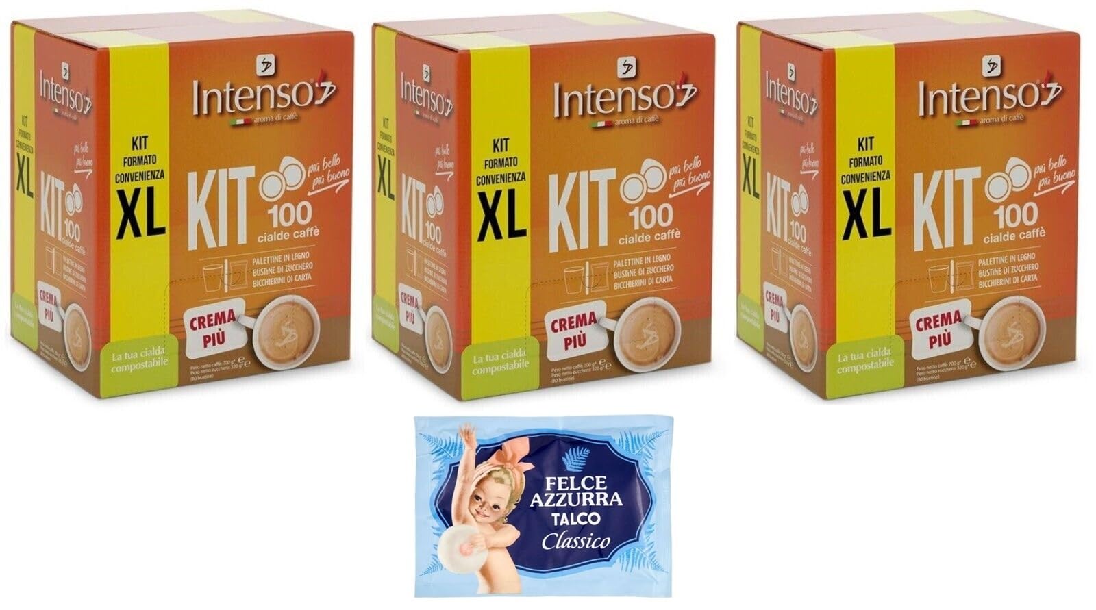 Intenso Caffè in Cialde KIT XL Crema Più Lot de 3 dosettes de café cuillère en bois gobelets en carton sachet de sucre 1 sachet de talc Felce Azzurra 100 g