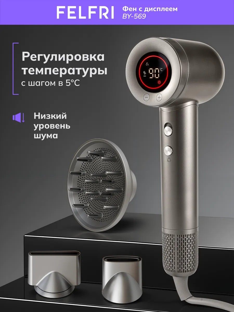 Фен стайлер оснащен дисплеем, что позволяет легко настраивать параметры в соответствии с вашими предпочтениями. Точечная регулировка температуры предоставляет вам полный контроль над процессом укладки, обеспечивая безопасность и заботу о здоровье ваших прядей. Фен профессиональный также легко справляется даже с самыми сложными задачами благодаря функциональности. С 15 режимами работы можно выбрать оптимальный вариант для любого типа волос.