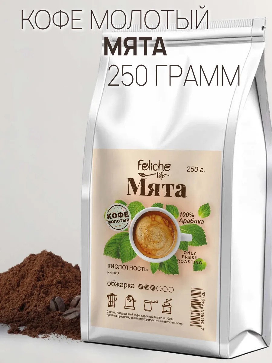 Your morning will be more pleasant if you start it with aromatic mint-flavored coffee. We use high-quality Brazilian Mogiana and Brazilian Santos Arabica beans for our flavored coffee, adding natural-identical flavors that are completely safe for the human body. This drink invigorates and lifts your mood. Mint ground coffee has a rich mint flavor and the unique Arabica aroma, which are perfectly combined in a single cup, with an unusual aroma and refreshing taste. This packaging option is suitable for home use, for preparing in the office, and as a gift. Created for lovers of delicate and smooth drinks, it is ideal for breakfast and lunch. The drink has a light, subtle acidity. The roast level is medium. The coffee is ground medium, slightly closer to fine, making it ideal for a coffee machine and for brewing in a cup, as well as for coffee in a Turk, French press, and coffee makers. Coffee Feliche is perfect for making lattes, cappuccinos, espressos, and Americanos! It can be enjoyed without sugar, making it ideal for those following a healthy diet. To preserve the flavor and aroma of freshly roasted beans, we use zip-lock packaging (reusable for easy storage and use). To open, pull the special key located on the back, above the degassing valve, ensuring the beans were packaged immediately after roasting, preserving maximum aroma and essential oils. You can always create a gift set from the products available in our store. Give our coffee—it's a delicious gift! The Feliche team wishes you a wonderful mood and pleasant shopping!
