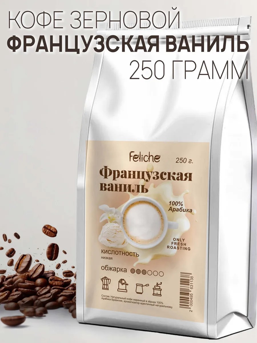 Утро будет приятнее, если Вы начнете его с ароматного кофе со вкусом Французской Ванили. В качестве основы для нашего ароматизированного кофе мы используем качественную арабику Бразилия Моджиана и Бразилия Сантос с добавлением идентичных натуральным ароматизаторов, абсолютно безопасных для организма человека. Напиток бодрит и повышает настроение. Кофе в зернах Французская ваниль обладает мягким и изысканным вкусом. Насыщенный сладкий аромат ванили, нежность сливок, горечь шоколада и богатый вкус натуральной арабики перенесут вас в уютное французское кафе! Такой вариант фасовки подойдет для домашнего использования, для приготовления в офисе и в качестве подарка. Создан для любителей нежных и мягких напитков. Идеален для завтрака и обеденного перерыва. Кислотность напитка легкая, слабовыраженная. Степень обжарки - средняя. Зерновой кофе подходит для кофемашины, а после помола и для для турки, френч-пресса и кофеварке или просто заваривания в чашке. Coffee Feliche идеально подходит для приготовления латте, капучино, эспрессо и американо! Напиток можно пить без сахара, поэтому отлично подходит для покупателей, которые соблюдают правильное питание и диету. Для того чтобы максимально сохранить вкус и аромат свежеобжаренных зёрен, мы применяем в производстве упаковку с Zip-Lock замком (многократное открытие и закрытие для удобства хранения и использования). Его нужно открыть, потянув за специальный ключик-замок, он находится на обратной стороне, над клапаном дегазации, который гарантирует, что зерна были упакованы сразу после обжарки, соответственно, сохранили максимум аромата и эфирных масел. Вы всегда можете собрать подарочный набор из товаров, доступных в нашем магазине. Дарите наш кофе- это очень вкусный подарок! Команда Феличе желает вам прекрасного настроения и приятных покупок!