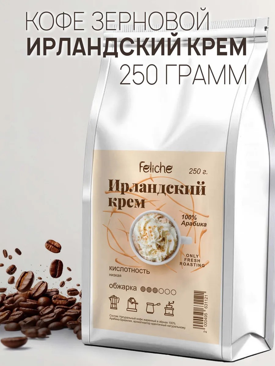 Start your morning with aromatic Irish Cream coffee. We use high-quality Brazilian Mogiana and Brazilian Santos Arabica beans for our flavored coffee, adding natural-identical flavors that are completely safe for the human body. The resulting drink is bright, invigorating, and slightly tart. Irish Cream is a dessert coffee made with 100% Arabica beans and boasts the delicate aroma of the famous whiskey and a creamy finish. The drink has a light, subtle acidity. The roast is medium. The whole bean coffee is suitable for a coffee machine, and after grinding, it can be used in a Turkish coffee pot, a French press, a coffee maker, or simply brewed in a cup. Coffee Feliche is ideal for making lattes, cappuccinos, espressos, and Americanos! It can be enjoyed without sugar, making it ideal for those following a healthy diet. To preserve the maximum flavor and aroma of freshly roasted beans, we use zip-lock packaging (reusable for easy storage and use). This can be opened by pulling a special key located on the back, above the degassing valve, which ensures the beans are packaged immediately after roasting, preserving the maximum aroma and essential oils. You can always create a gift set from the products available in our store. Give our coffee—it's a delicious gift! The Felice team wishes you a wonderful mood and pleasant shopping!