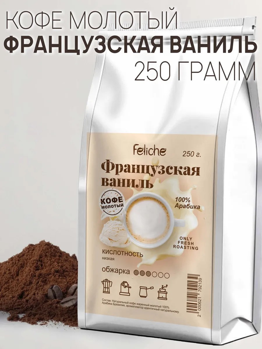 Your morning will be more pleasant if you start it with aromatic French Vanilla coffee. We use high-quality Brazilian Mogiana and Brazilian Santos Arabica beans for our flavored coffee, adding natural-identical flavors that are completely safe for the human body. This drink invigorates and lifts your mood. French Vanilla ground coffee has a soft and refined taste. The rich, sweet aroma of vanilla, the smoothness of cream, the bitterness of chocolate, and the rich taste of natural Arabica will transport you to a cozy French café! This packaging option is suitable for home use, for preparing in the office, and as a gift. Created for lovers of delicate and smooth drinks, it is ideal for breakfast and lunch. The drink has a light, subtle acidity. The roast level is medium. The coffee is ground medium, slightly fine, making it ideal for coffee machines and cup brewing, as well as for Turkish coffee pots, French presses, and coffee makers. Coffee Feliche is ideal for making lattes, cappuccinos, espressos, and Americanos! It can be enjoyed without sugar, making it ideal for those following a healthy diet. To preserve the flavor and aroma of freshly roasted beans, we use Zip-Lock packaging (reusable for easy storage and use). It opens by pulling a special key located on the back, above the degassing valve, ensuring the beans were packaged immediately after roasting, preserving maximum aroma and essential oils. You can always create a gift set from the products available in our store. Give our coffee—it's a delicious gift! The Feliche team wishes you a wonderful mood and pleasant shopping!