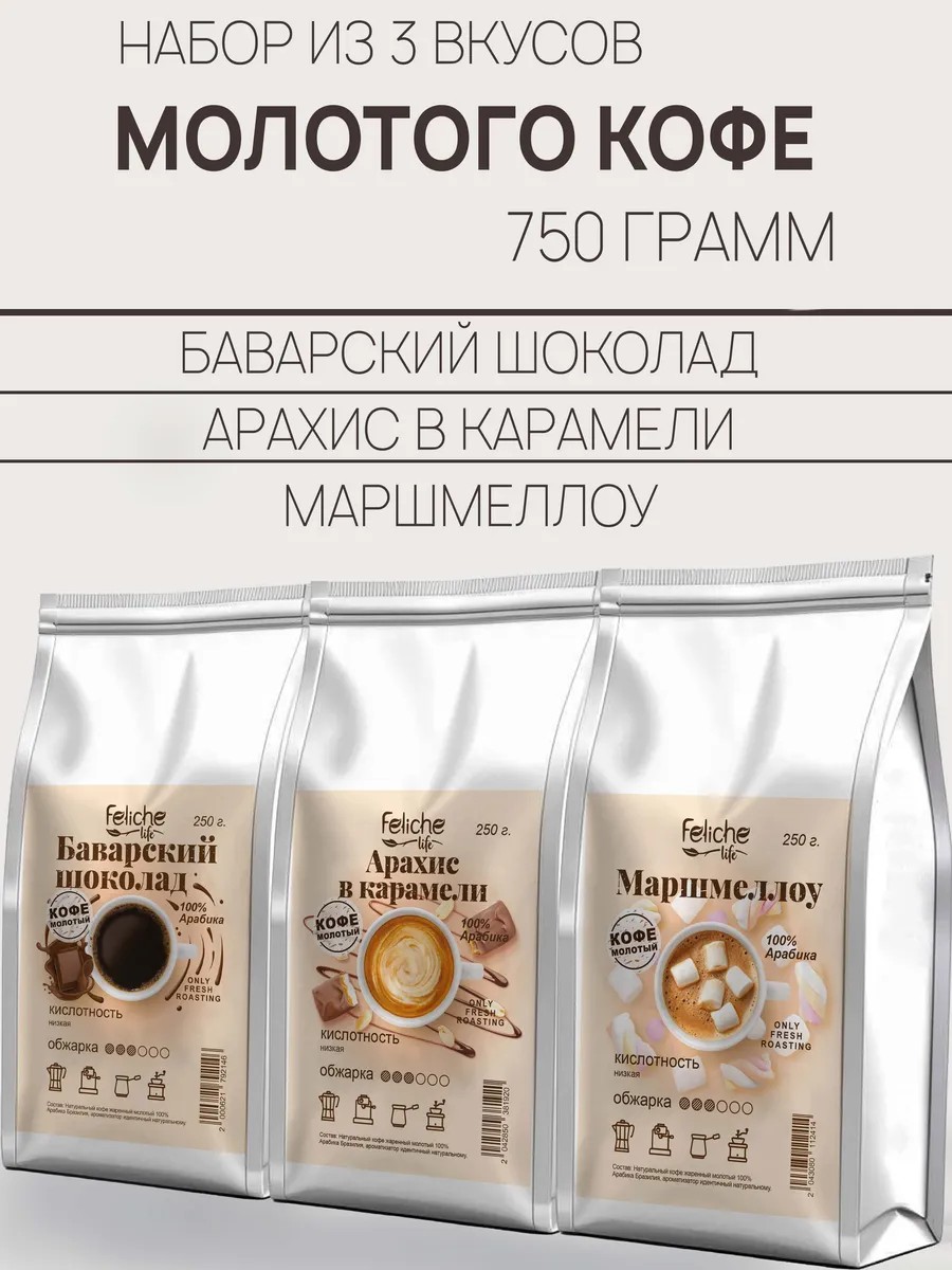 Feliche Кофе молотый 250г х 3шт Шоколад, Арахис, Маршмеллоу