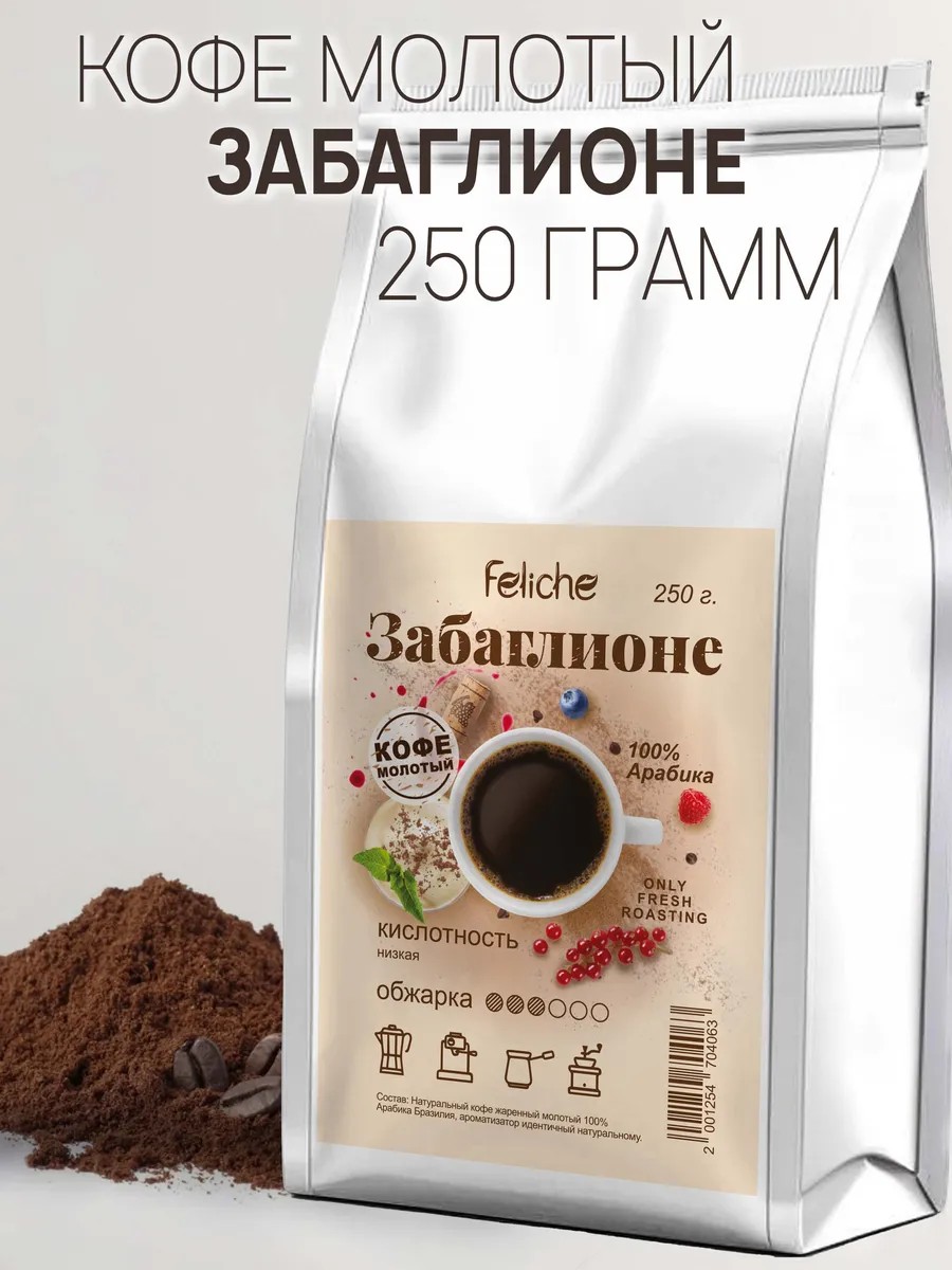 Утро будет приятнее, если Вы начнете его с ароматного кофе со вкусом Забаглионе. В качестве основы для нашего ароматизированного кофе мы используем качественную арабику Бразилия Моджиана и Бразилия Сантос с добавлением идентичных натуральным ароматизаторов, абсолютно безопасных для организма человека. Напиток бодрит и повышает настроение. Молотый кофе Забаглионе считается десертным кофе и обладает мягким и изысканным вкусом. Пожалуй один из самых популярных десертных сортов с ароматом знаменитого итальянского десерта забаглионе, который готовится из взбитых сливок, сахара и вина. Аромат этого кофе богат шоколадными и винными нотами, а в ярком незабываемом вкусе "Забаглионе" присутствует и характерная винная кислинка, и сладость молочного шоколада. Такой вариант фасовки подойдет для домашнего использования, для приготовления в офисе и в качестве подарка. Создан для любителей нежных и мягких напитков. Идеален для завтрака и обеденного перерыва. Кислотность напитка легкая, слабовыраженная. Степень обжарки - средняя. Помол кофе средний, чуть ближе к мелкому, поэтому идеально подходит для кофемашины и заваривания в чашке, а так же кофе для турки, френч-пресса, и кофеварки. Coffee Feliche идеально подходит для приготовления латте, капучино, эспрессо и американо! Напиток можно пить без сахара, поэтому отлично подходит для покупателей, которые соблюдают правильное питание и диету. Для того чтобы максимально сохранить вкус и аромат свежеобжаренных зёрен, мы применяем в производстве упаковку с Zip-Lock замком (многократное открытие и закрытие для удобства хранения и использования). Его нужно открыть, потянув за специальный ключик-замок, он находится на обратной стороне, над клапаном дегазации, который гарантирует, что зерна были упакованы сразу после обжарки, соответственно, сохранили максимум аромата и эфирных масел. Вы всегда можете собрать подарочный набор из товаров, доступных в нашем магазине. Дарите наш кофе - это очень вкусный подарок! Команда Феличе желает вам прекрасного настроения и приятных покупок!