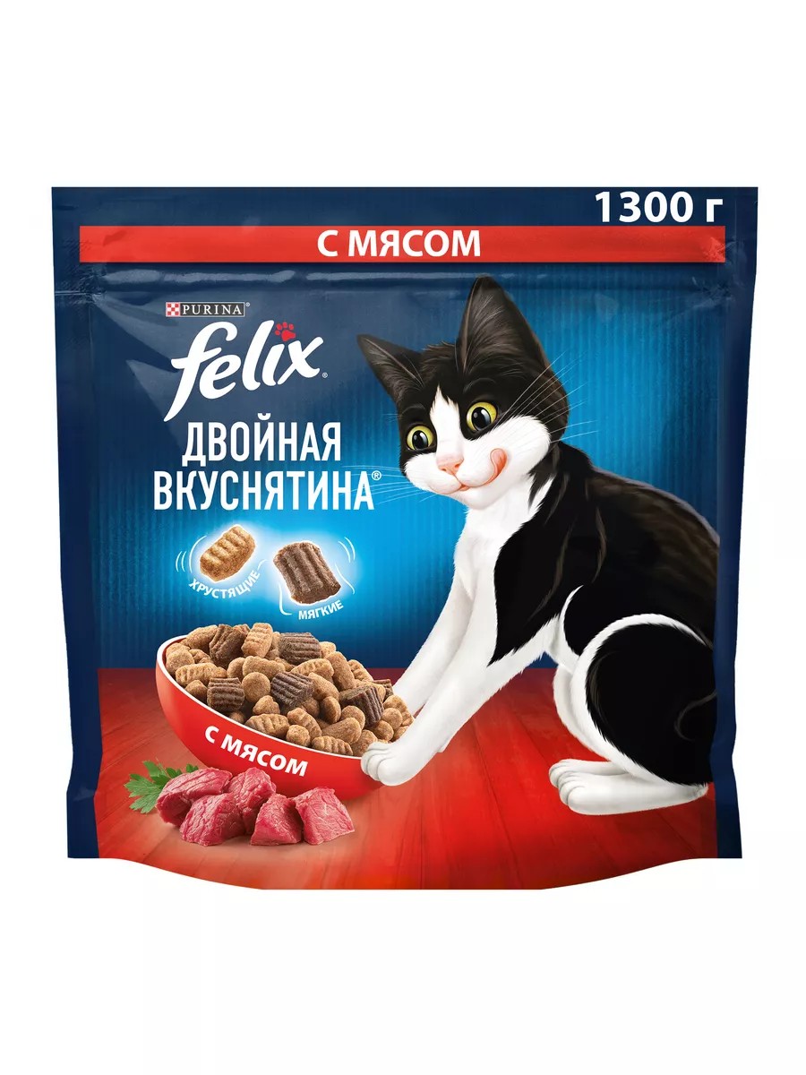 FELIX Сухой корм Двойная Вкуснятина для кошек 1,3кг с мясом