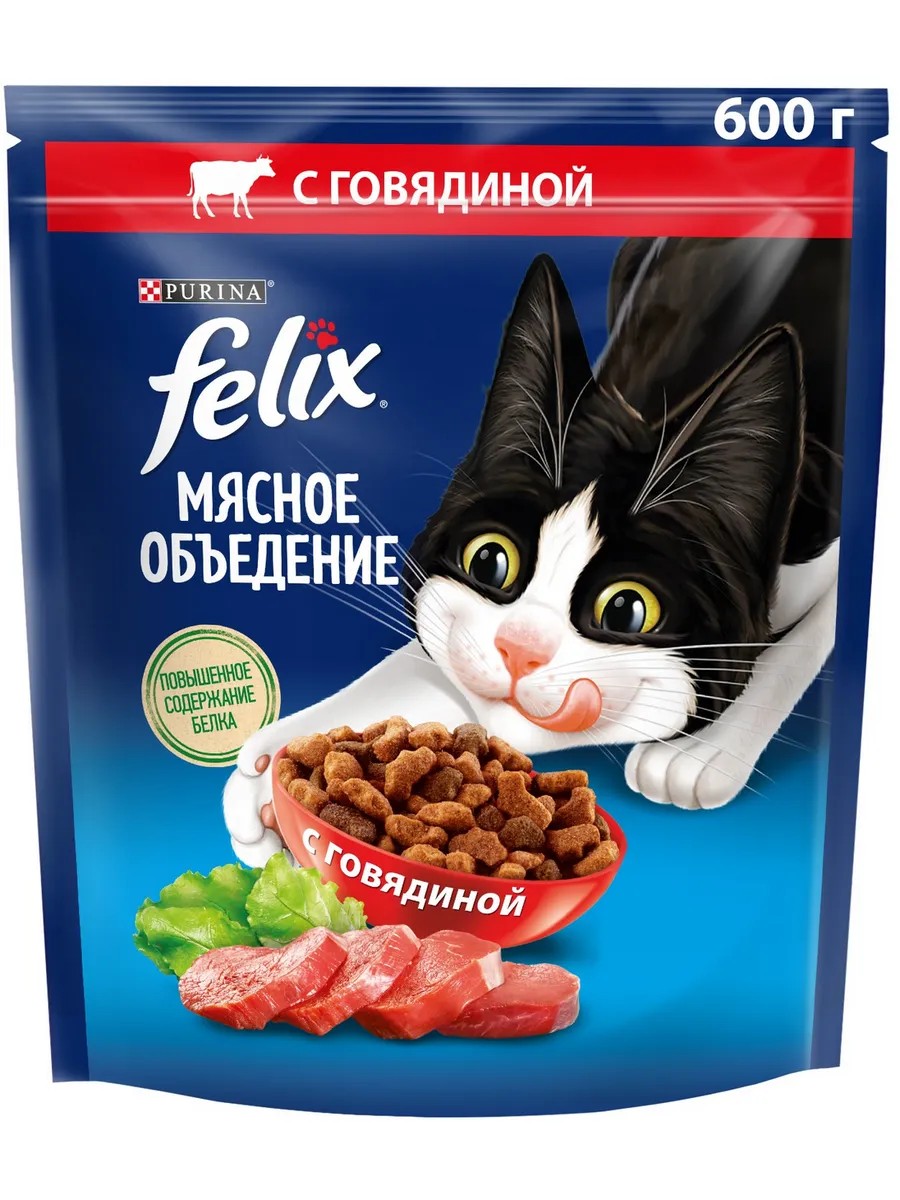 Полное наименование товараКорм сухой для взрослых кошек FELIX Мясное объедение с говядиной, 600г