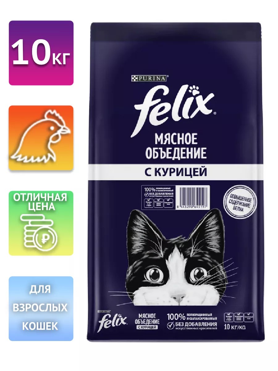 Эксперты Purina (Пурина), разрабатывая сухие корма для домашних питомцев, создали корм для взрослых кошек Felix Мясное объедение — специально для Вашего любителя мяса.