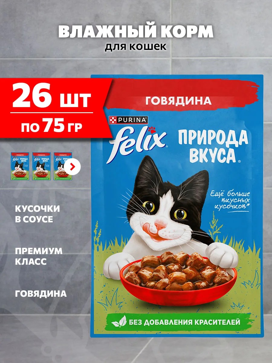 Эксперты Purina, разрабатывая влажные корма для домашних питомцев, создали насыщенный корм для кошек премиум класса влажный Felix «Природа вкуса» с аппетитными кусочками в сочном соусе. Полнорационный влажный корм обеспечит Вашего любимца всеми необходимыми питательным веществами.