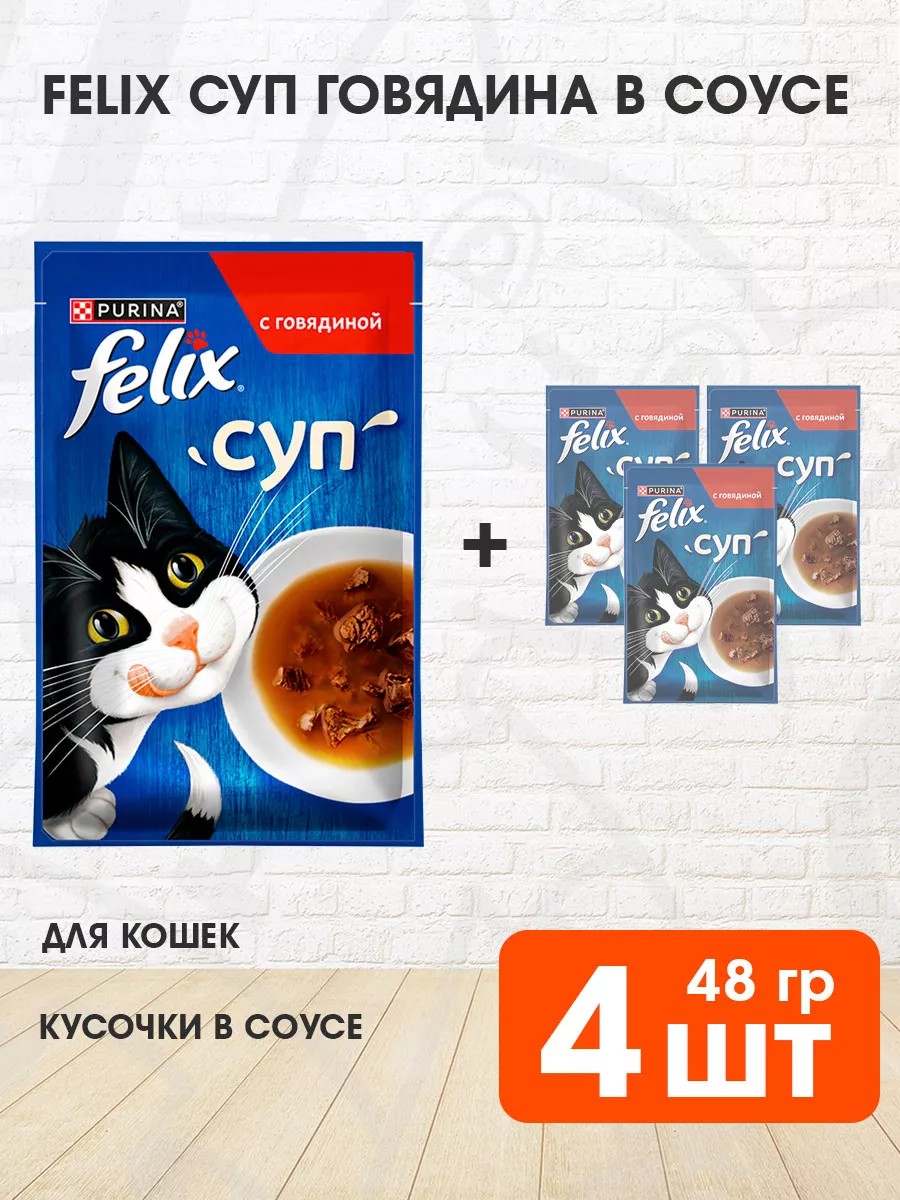 FELIX Корм влажный Суп для кошек говядина соус 48 г 4 шт