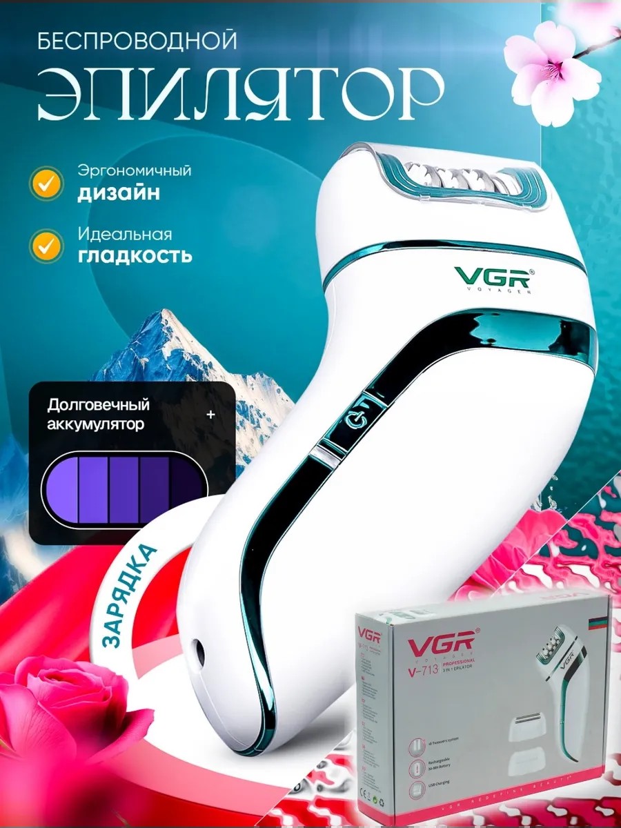 Депилятор электрический VGR V-713 - беспроводное устройство 3 в 1 для ухода за кожей.