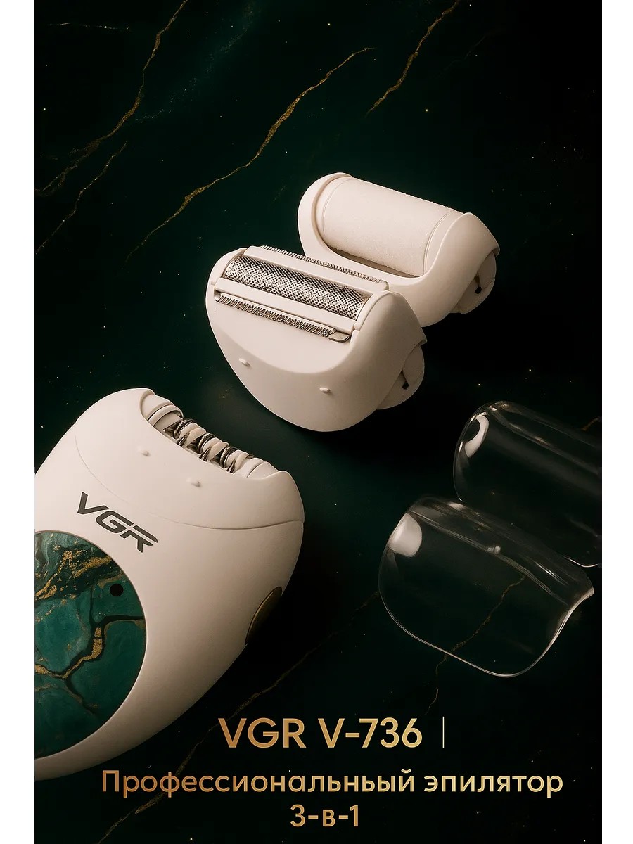 Эпилятор 3 в 1 V-736 – это универсальный прибор для гладкой кожи всего тела. Мощный мотор с двумя скоростями обеспечивает эффективное удаление волос, а 18 пинцетов гарантируют тщательную эпиляцию. В комплект входят насадки: бритвенная насадка (насадка триммер), насадка для деликатной эпиляции, что позволяет использовать эпилятор для разных зон – от лица до ног. так же в наборе есть насадка-пемза для стоп, которая поможет привести в порядок кожу на ногах. Съемная моющаяся головка упрощает уход за устройством. Эпилятор работает от аккумулятора, время работы которого составляет 70 минут после полной зарядки (120 минут).