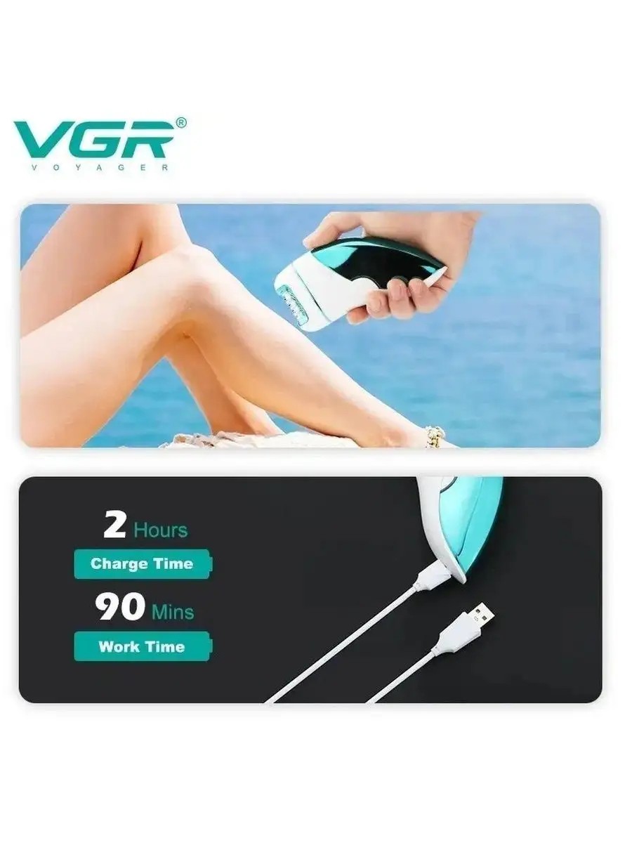 This women's epilator with a built-in battery is the perfect 3-in-1 tool for hair removal anywhere on the body and foot cleansing. This device from VGR features 18 tweezers and helps remove unwanted hair from sensitive areas like the face, underarms, bikini area, and genital area for up to 4 weeks. This versatile appliance comes with a razor, a gentle foot cleansing attachment, and a power cord. This epilator, along with other attachments, will help reduce future hair growth and eliminate it permanently. This cordless, handheld device easily replaces traditional razors and expensive photoepilation and electrolysis treatments at salons. Thanks to its built-in battery, you can use the device without a charging cord anywhere, at home or on the go. It has a battery life of up to 90 minutes. This lightweight and portable device fits easily in a purse or backpack, allowing you to use it anytime, anywhere. The device is powered by a built-in battery, ensuring continuous operation without interruption. The battery-powered trimmer helps remove ingrown hairs and stray hairs, while the waterproof epilator head allows for comfortable use in the bath or shower. This set makes a wonderful gift for any woman who values the health and beauty of her body. This electronic device is ideal for professional use in beauty salons or at home. Our products undergo rigorous quality control, guaranteeing excellent performance for years to come. The epilator will remove unwanted hair anywhere on the body quickly and effectively. The electric epilation attachment is ideal for removing hair on legs and arms, and a special attachment for heels helps remove dead skin and provides a pleasant massage effect. With our professional device, you can get rid of unwanted hair quickly and painlessly and enjoy smooth skin immediately after use. An epilator is an effective everyday grooming product for men and women that will help remove hair and keep your skin smooth and soft for a long time. This professional device with three functions is a great gift for your beloved mother, friend, or sister.