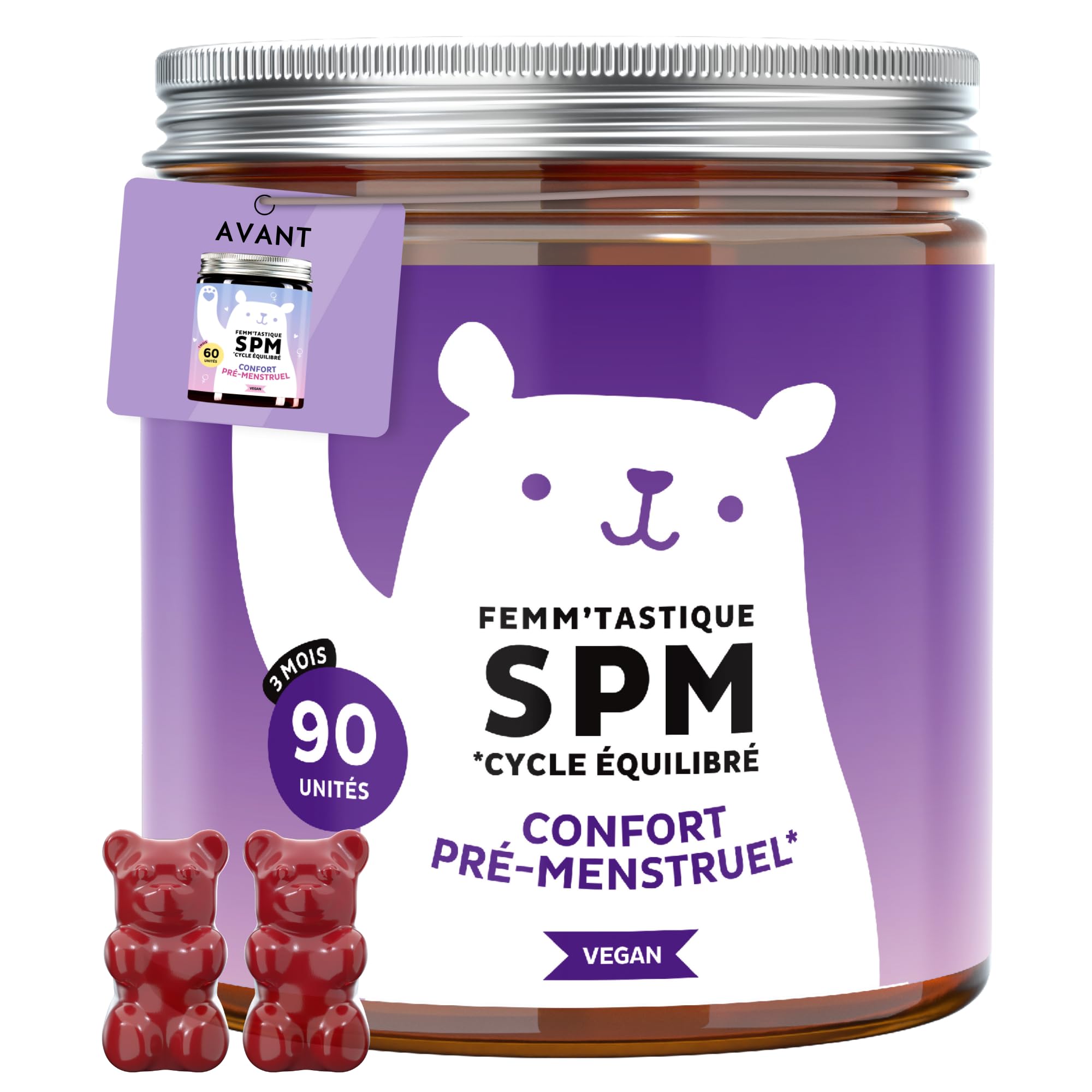 Femm'tastique SPM Cycle quilibr - Confort pr menstruel - avec 30mg de Poivre des moines Vitamine B6 et Extrait de Dong Quai - 90 unit s (3 Mois) - Vegan - Bears with Benefits 1 unit (Lot de 90)