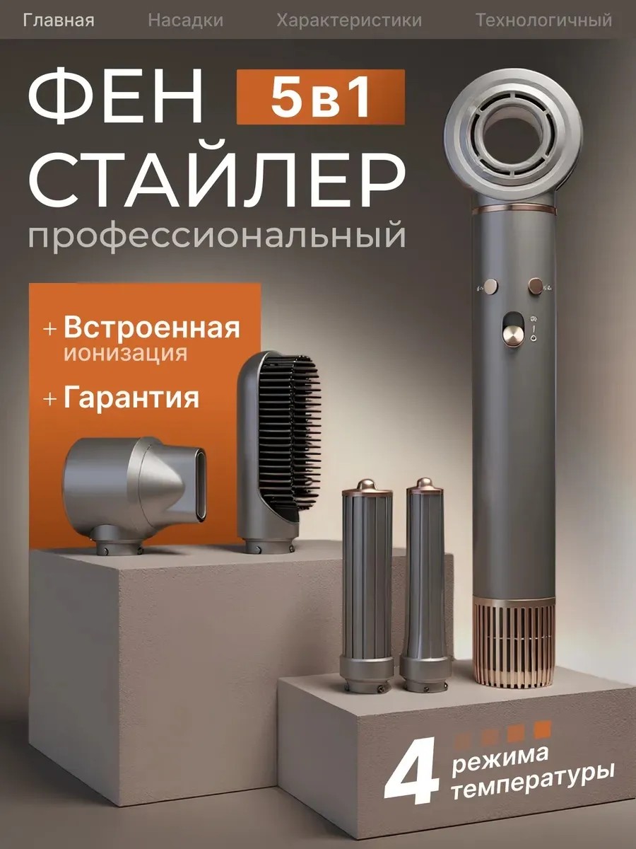 Многофункциональный фен-стайлер с впечатляющей мощностью воздушного потока до 110 000 оборотов в минуту — это ваш надёжный помощник в создании безупречных причёсок. Благодаря инновационному эффекту Куанда, вы сможете создавать профессиональные укладки, не выходя из дома.