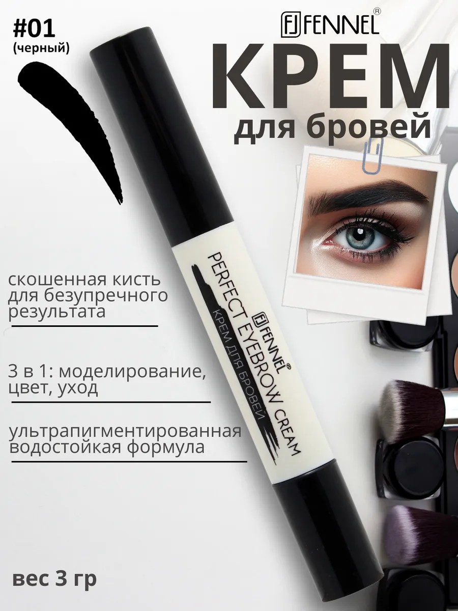 Крем-карандаш для бровей Fennel с кистью, оттенок 01 — чёрный