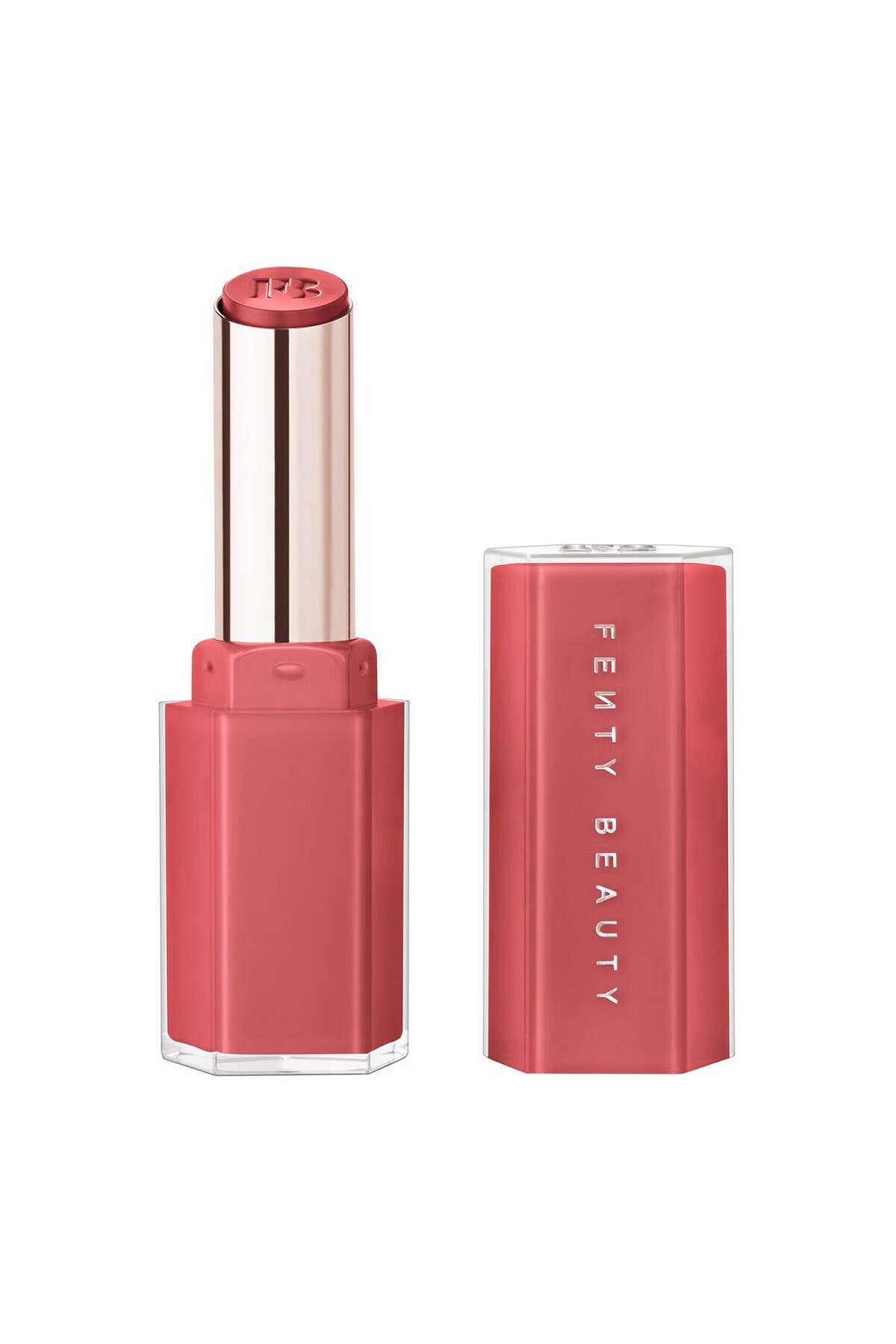 Fenty Beauty combines a hydrating lipstick and a shimmering gloss for a highly pigmented look with the new Gloss Bomb Stix. Now you can get the explosive shine of Gloss Bomb in a tinted stick.