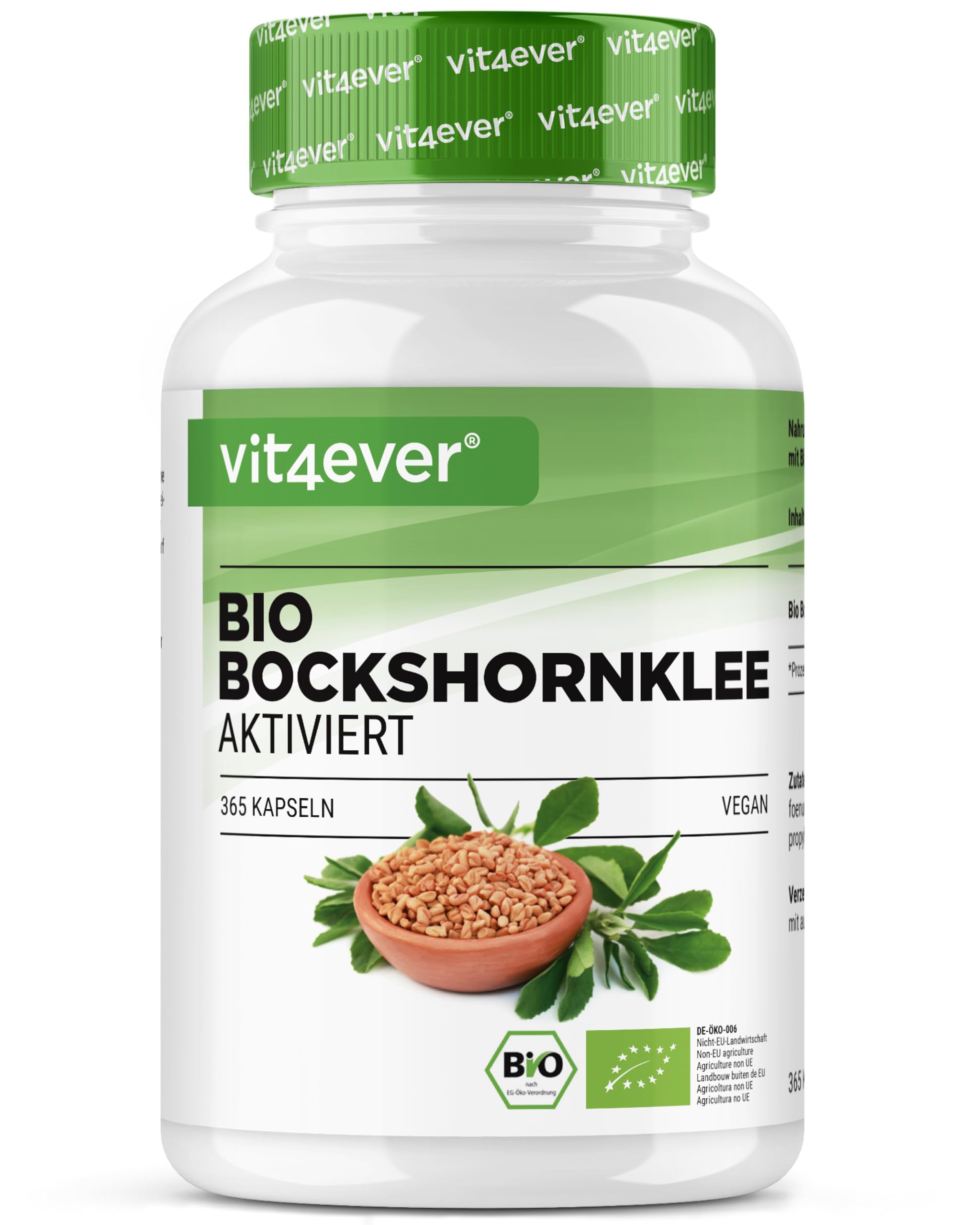 VIT4EVER QUALITY: The Vit4ever range offers a wide variety of food supplements for every target group. Our products are made from premium raw materials and produced exclusively in carefully selected EU companies to guarantee consistently high quality. Germany and the Netherlands are among our production sites. If you are not satisfied with a product or need assistance, we are always here to help. VIT4EVER PHILOSOPHY: To guarantee the best quality, we place great importance on care and responsibility in the manufacturing of our products. Trust is good, but the highest standards are better – that's why we implement additional measures for your safety (see product photos). NO UNWANTED ADDITIVES: Our capsules are vegan and contain no undesirable additives such as magnesium stearate, flavorings, colorings, stabilizers, or gelatin. They are, of course, GMO-free, lactose-free, gluten-free, and preservative-free. Pure organic quality without compromise. ACTIVATED RAW MATERIAL: For our organic fenugreek capsules, we use a premium-quality, activated natural raw material. Activated means that the fenugreek is microbiologically tested, thoroughly cleaned, and heat-treated before being ground into a fine powder for capsule production. This results in a particularly high-quality raw material with excellent tolerability and optimal bioavailability. 3-MONTH SUPPLY: A well-balanced dose of 2600 mg of organic fenugreek seed powder per daily serving (650 mg per capsule). The package contains 365 certified organic vegan capsules. Our natural fenugreek powder is made from genuine Indian seeds. At 4 capsules per day, the box provides a supply of over 90 days.QUALITÉ VIT4EVER : La gamme Vit4ever propose une multitude de compléments alimentaires pour chaque groupe cible. Nos produits sont fabriqués à partir de matières premières de qualité supérieure et produits exclusivement dans des entreprises de l'UE soigneusement sélectionnées afin de garantir une qualité élevée et constante. L'Allemagne et les Pays-Bas font partie de nos sites de production. Si vous n'êtes pas satisfait d'un produit ou si vous avez besoin d'aide, nous sommes toujours à votre disposition. PHILOSOPHIE VIT4EVER : pour garantir la meilleure qualité, nous accordons une grande importance au soin et à la responsabilité dans la fabrication de nos produits. La confiance c'est bien, les normes les plus élevées c'est mieux - c'est pourquoi nous mettons en place des mesures supplémentaires pour votre sécurité (voir les photos des produits). SANS ADDITIFS INDÉSIRABLES : nos gélules sont végétaliennes et ne contiennent pas d'additifs indésirables tels que stéarate de magnésium, arômes, colorants, stabilisateurs et gélatine. Elles sont bien entendu sans OGM, sans lactose, sans gluten et ne contiennent pas de conservateurs. Une pure qualité bio sans compromis. MATIÈRE PREMIÈRE ACTIVÉE : Pour nos gélules de fenugrec bio, nous utilisons une matière première naturelle de première qualité activée. Activé signifie que le fenugrec est contrôlé microbiologiquement, soigneusement nettoyé et traité thermiquement avant d'être transformé en une fine poudre pour la fabrication de capsules. Il en résulte une matière première de qualité particulièrement élevée avec une excellente tolérance et une biodisponibilité optimale. 3 MOIS D'AVANCEMENT : Particulièrement bien dosé avec 2600 mg de poudre de graines de fenugrec bio par portion journalière (650 mg par gélule). Le paquet contient 365 gélules végétaliennes de qualité biologique certifiée. Notre poudre de fenugrec naturelle est obtenue à partir de véritables graines indiennes. À raison de 4 gélules par jour, la boîte suffit pour plus de 90 jours.Fenugrec Activé Bio - 365 gélules - Hautement dosé à 2600mg par dose journalière (650mg par gélule) - Fenugreek certifié bio - Vegan