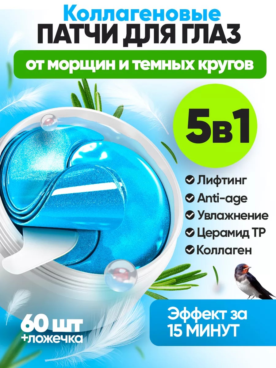 Патчи для глаз из Кореи от отеков, мешков и темных кругов - профессиональная косметика для ежедневного ухода. Натуральная гидрогелевая мини-маска с экстрактом ласточкиного птичьего гнезда, золотыми частицами и коллагеном разглаживает мимические складки, устраняет признаки усталости/стресса. Коллагеновые и антивозрастные патчи от отеков увлажняют, разглаживают кожу вокруг глаз, подтягивают область носогубных складок, век, лба, содержат полезные компоненты, гиалуроновую кислоту. Обладают тонизирующим, осветляющим, выравнивающим действием с экспресс-эффектом антиотечности утром и вечером, просты в использовании: наклеить патчи на кожу вокруг глаз на 10-15 минут. Питательное средство для мгновенного эффекта омоложения, осветления, питания, увлажнения. Патчи под глаза понравятся подростку, молодому парню, девушке, взрослому мужчине, женщине. В баночке 60 штук патчей и ложечка. Восстанавливающий бьюти-продукт -отличный выбор для борьбы с несовершенствами кожи. Хранить в холодильнике. Подходит для всех типов кожи(сухой, чувствительной, склонной к аллергии). Средство с омолаживающим эффектом для восстановления кожи после зимы, преображает, разглаживает морщины. Помогает избавиться от прыщей/воспалений. Баночка с мелкими стикерами - патчами и лопаточкой не оставит никого равнодушным. Одноразовые пленки устраняют раздражения, восстанавливают кожу, придают здоровый вид. Патчи находятся в специальной жидкости, предотвращающей их пересыхание. Для использования дома, в путешествии, после перелета(тонизируют и увлажняют кожу). Коллагеновые патчи пригодятся весной, летом, осенью, зимой. Восстанавливают кожный покров после снятия макияжа с легким лимфодренажным эффектом, дополнят курс лечения от отечности/темных синяков. Органическая косметика скорректирует формы и контур лица(избавит от отечности) и межбровных зон, найдет применение в области косметологии, имеет накопительный эффект.