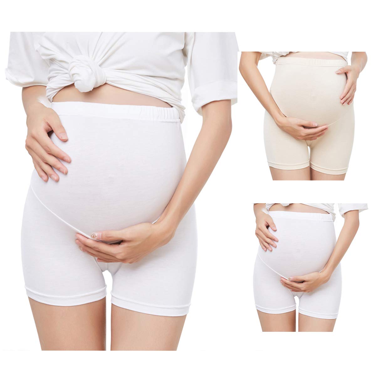 FEOYA Maternity Shorts Knickers High Elastic Cotton Safety Shorts Pants 2pcs L (99-110 lb) High Waist 01